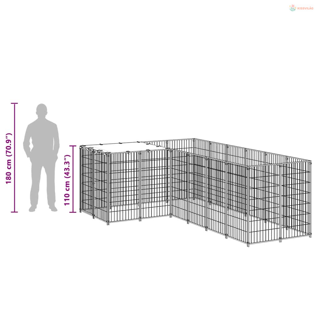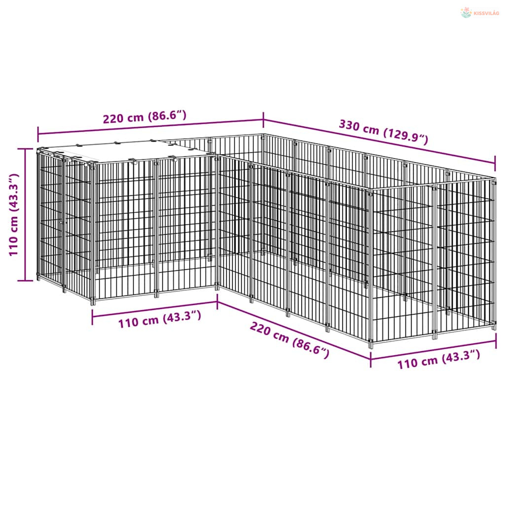 Fekete acél kutyakennel 4,84 m²