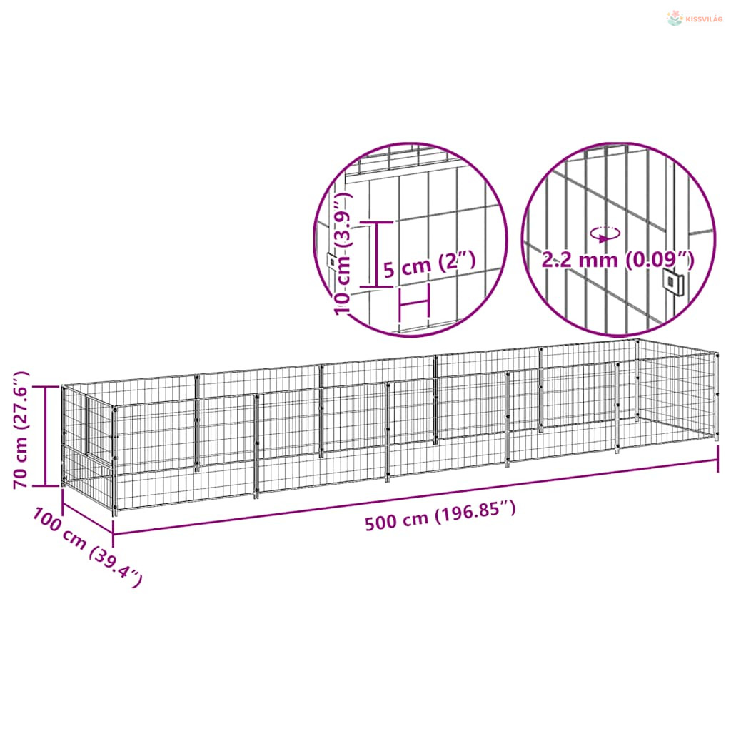 Fekete acél kutyakennel 5 m²