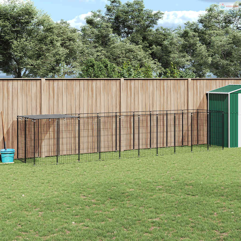 A nagy kutyaketrec bőséges mozgásteret biztosít, míg az acélhálós fal segít megelőzni a váratlan baleseteket, miközben biztosítja a szellőzést. A masszív acélszerkezetnek köszönhetően ez a kisállat-ketrec tartós és hosszú élettartamú. Víz- és UV-álló polietilén tetővel rendelkezik. Ezenkívül az ajtó zárható retesszel rendelkezik, amely extra biztonságot nyújt kutyáinak.