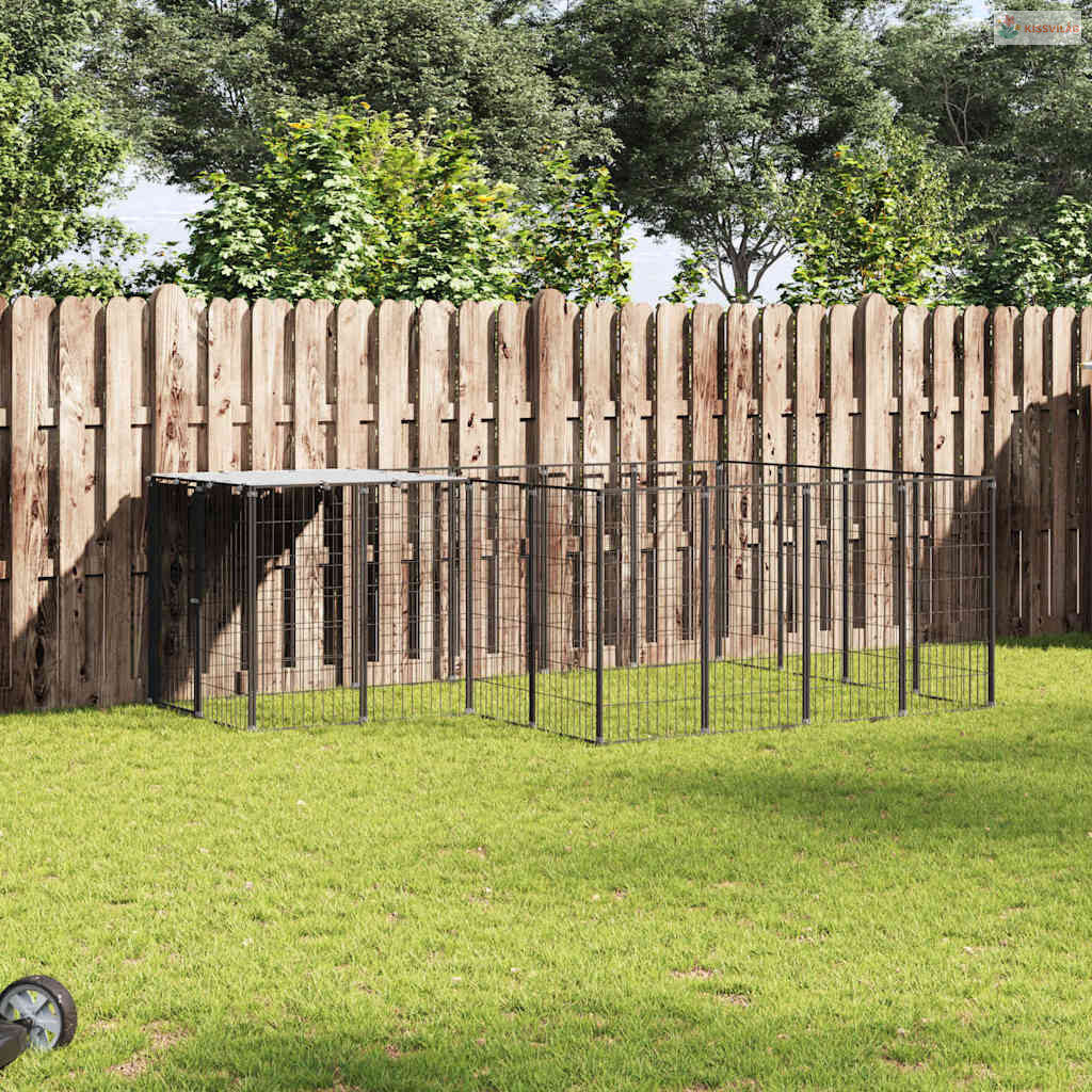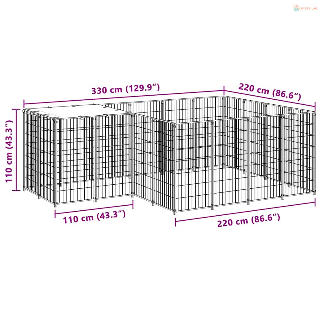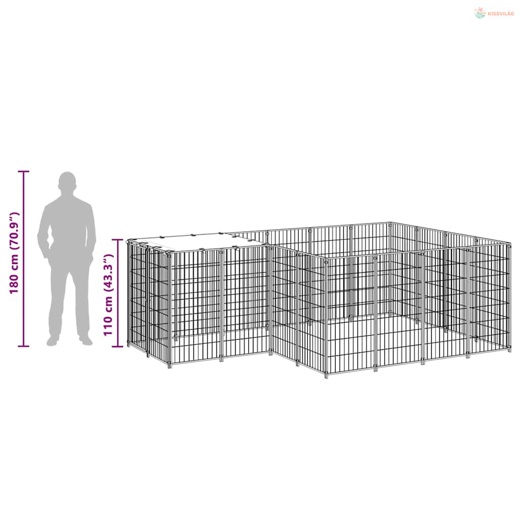 Fekete acél kutyakennel 6,05 m²