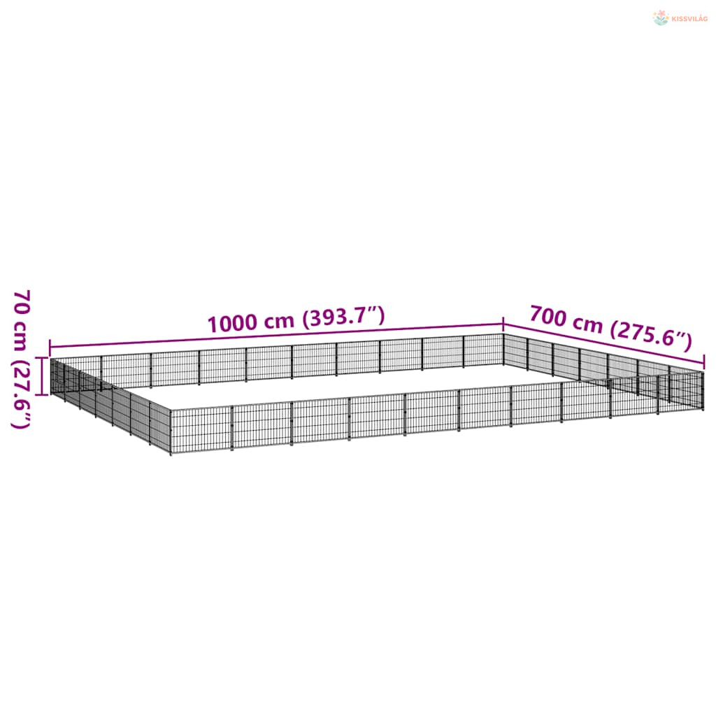 Fekete acél kutyakennel 70 m²