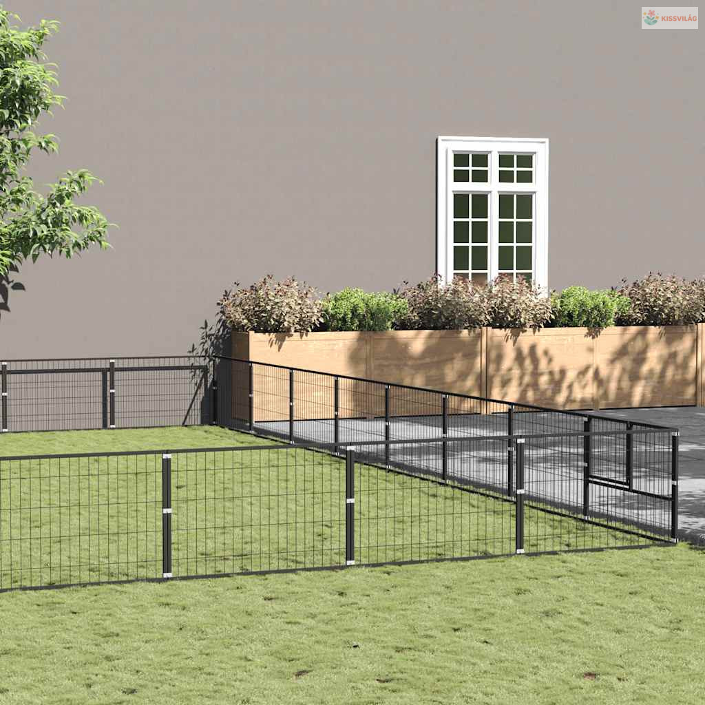 Fekete acél kutyakennel 72 m²