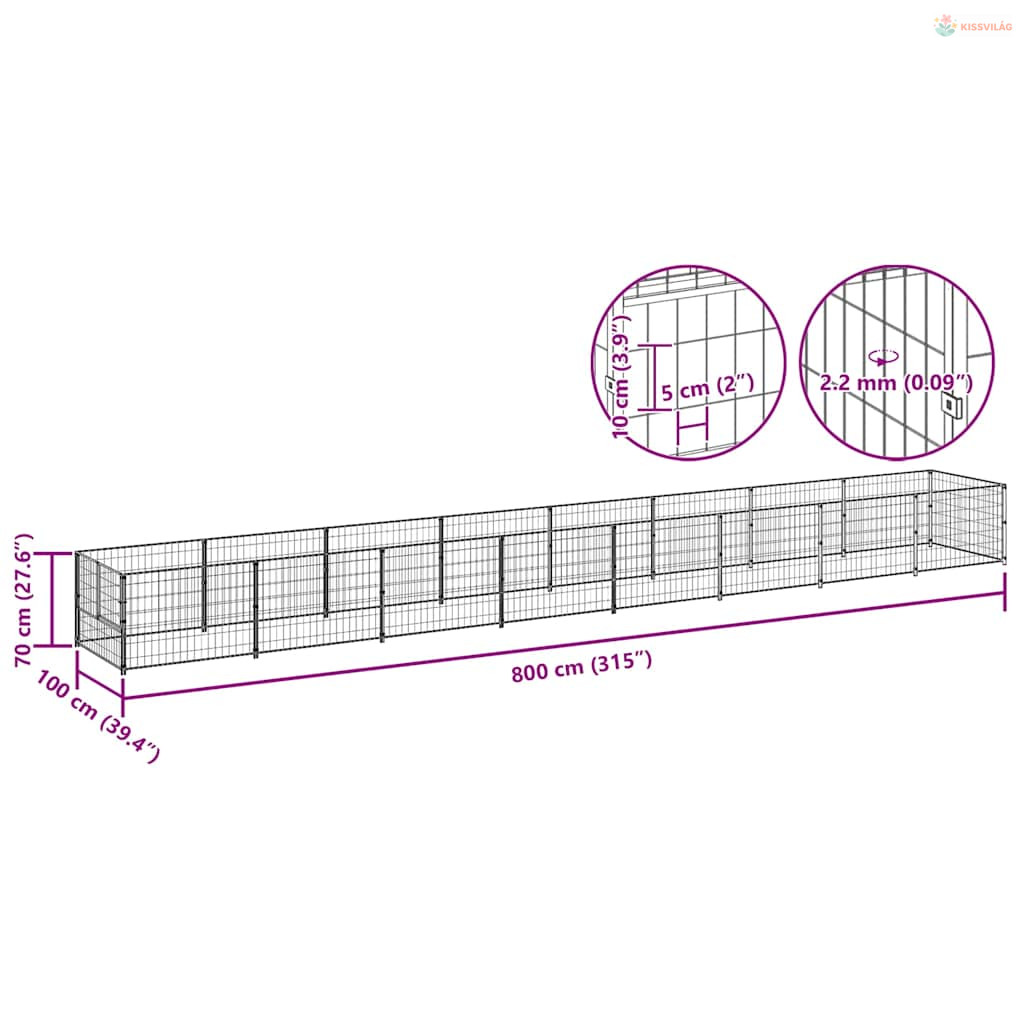 A nagy méretű kutyakennel rengeteg helyet nyújt, míg az acél dróthálós kerítés segít megelőzni a váratlan baleseteket, miközben állatai elegendő friss levegőhöz jutnak. A masszív acélszerkezetnek köszönhetően a kutyakennel kiváló minőséggel bír, és hosszú éveken keresztül használható. Emellett az ajtó zárható retesszel rendelkezik, amely extra biztonságot és védelmet nyújt kutyái számára.