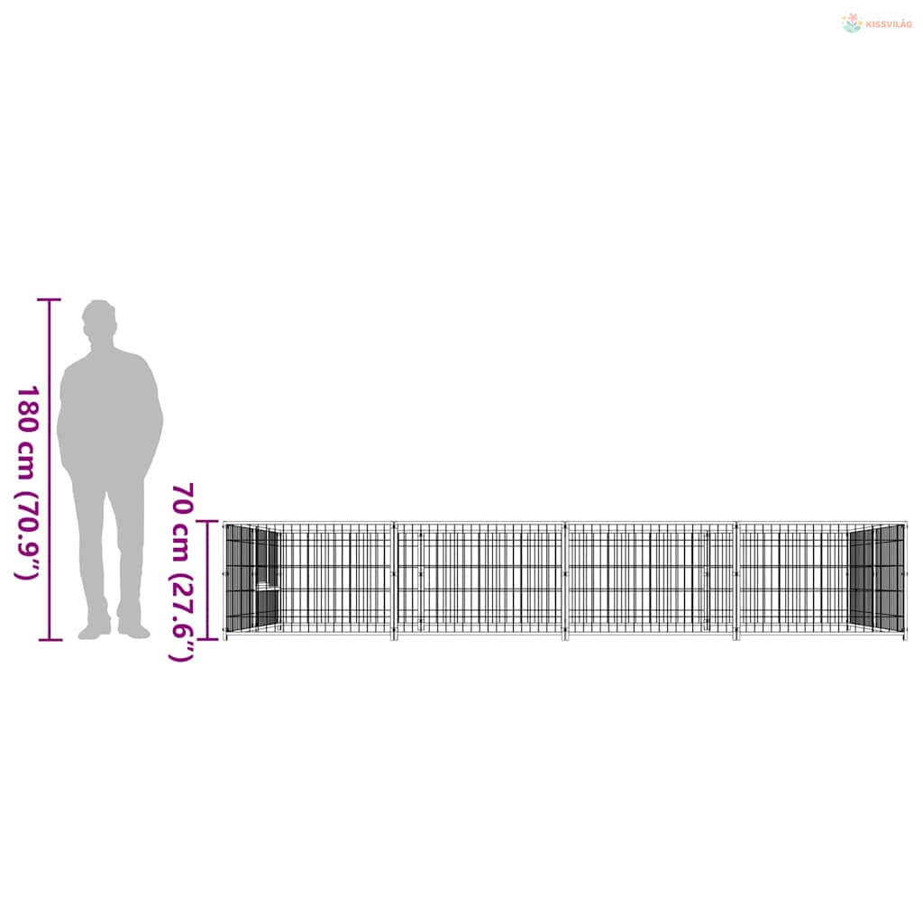 Fekete acél kutyakennel 8 m²
