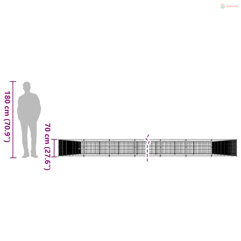 Fekete acél kutyakennel 80 m²