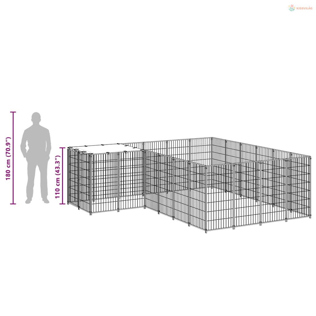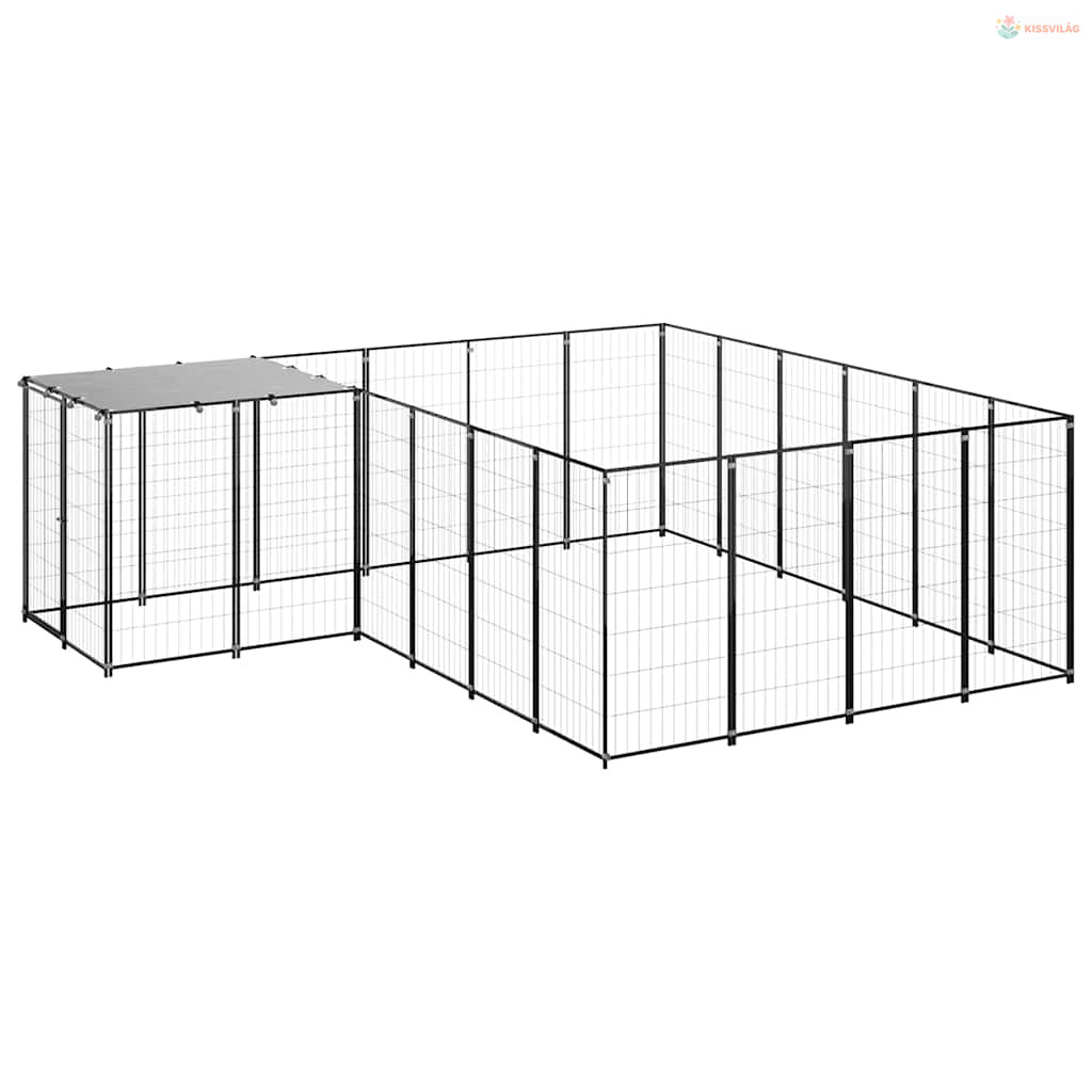 Fekete acél kutyakennel 8,47 m²