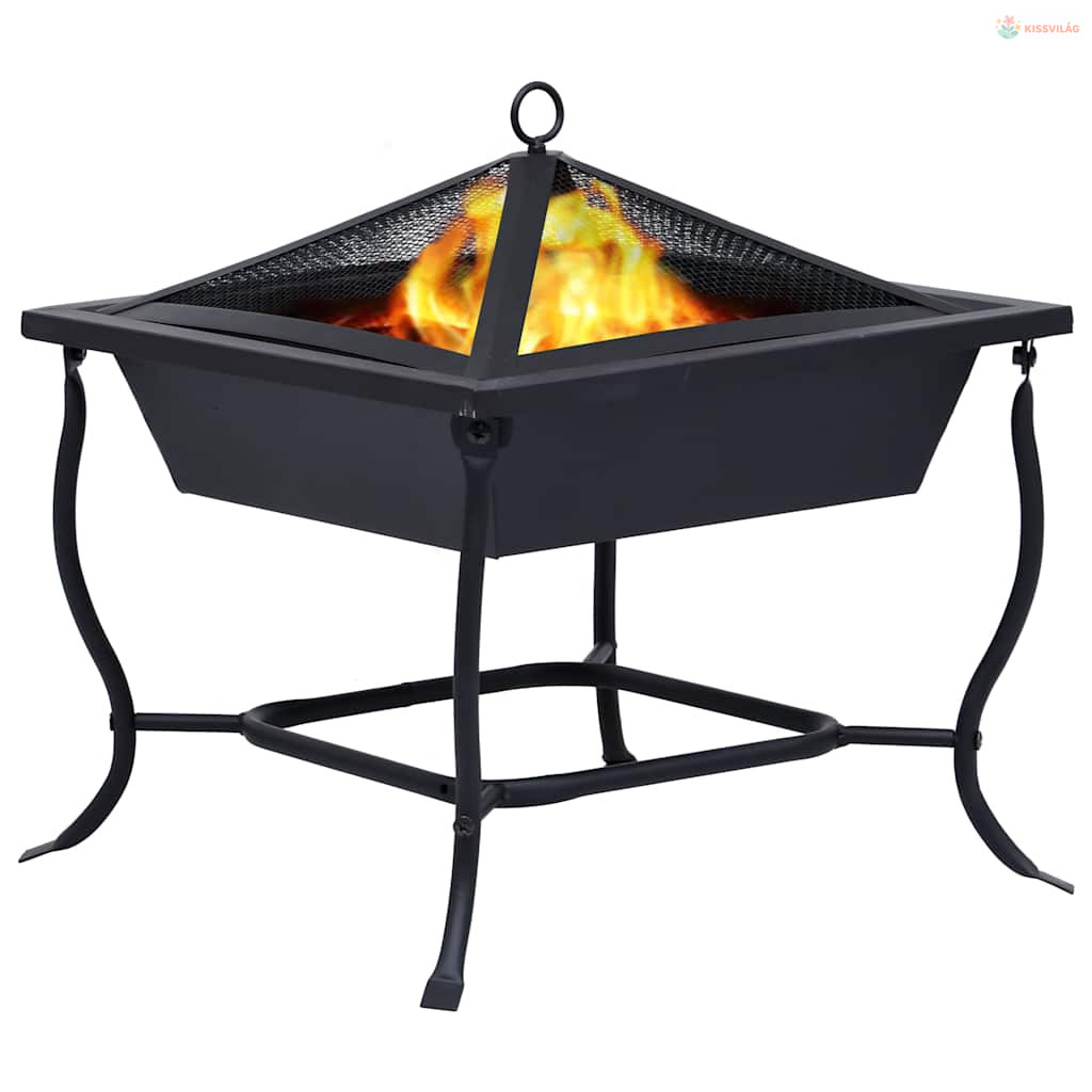 A tűzrakó tál porszórt acélból készült, így kitűnő hőelnyelő és hősugárzó képességgel bír. Száraz fa, rönkök és faszén égetésére használható. Lábai tartós acélból készültek, így stabilan áll, akárhová is teszi a kertben. A tűztál rozsdaálló, könnyű és időjárásálló, így sokáig használható a szabadban. Ráadásul védőelemmel lett ellátva, mely megakadályozza a parázs széthullását, és piszkafával szállítjuk, mellyel megpiszkálhatja a tüzet és biztonságosan leveheti a védőelemet. Ha rácsot tesz rá, a tűztál akár sütögetéshez is használható.