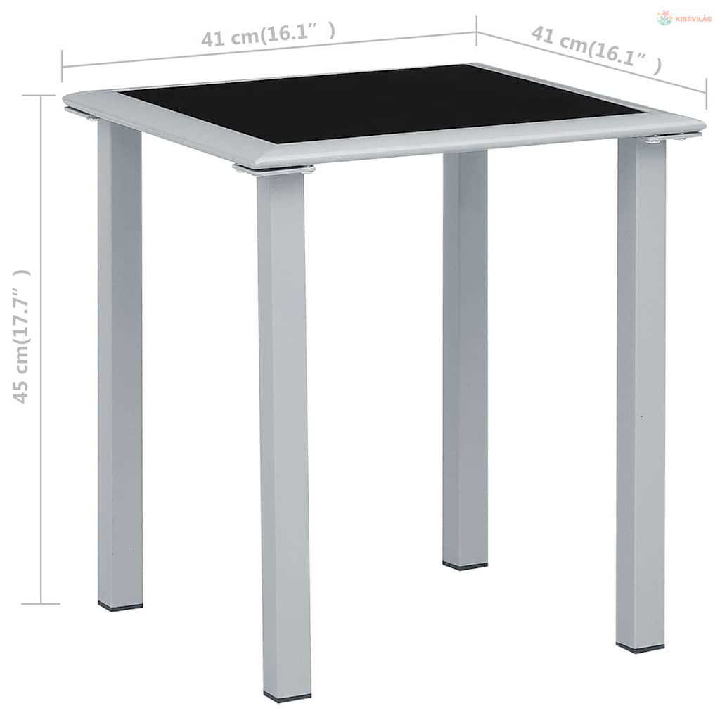Fekete és ezüst acél és üveg kerti asztal 41 x 41 x 45 cm