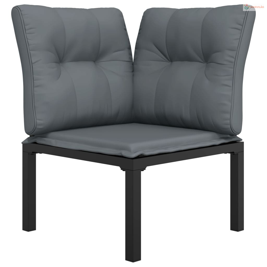 Fekete és szürke polyrattan kerti sarokfotel párnákkal