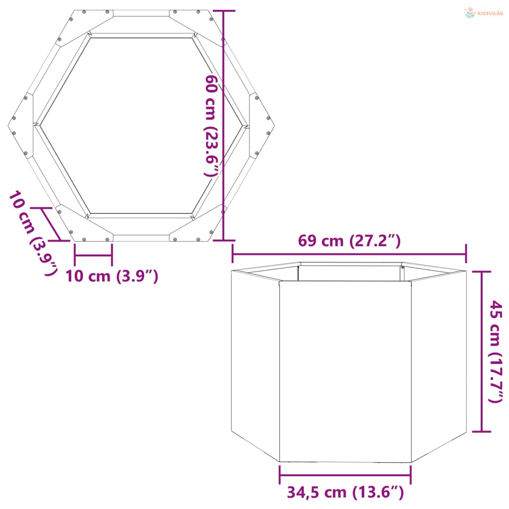 • Robusztus és strapabíró anyag: A növénytartó acélból készült, így időjárásálló és strapabíró, valamint hosszú távú kültéri használatra alkalmas.