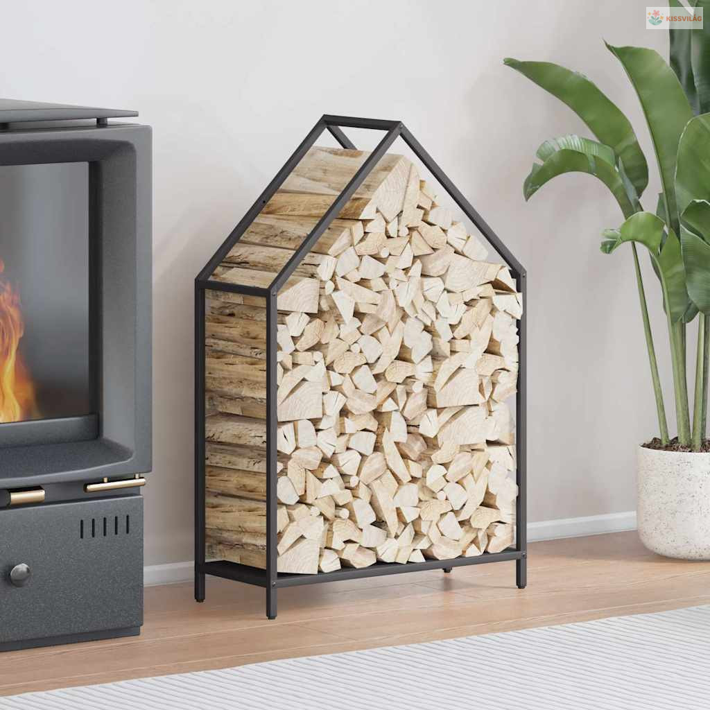 Fekete hidegen hengerelt acél tűzifatároló 60x25x90 cm