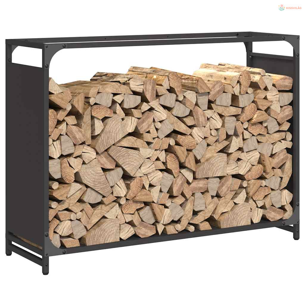 Fekete hidegen hengerelt acél tűzifatároló 90x28x65 cm