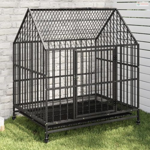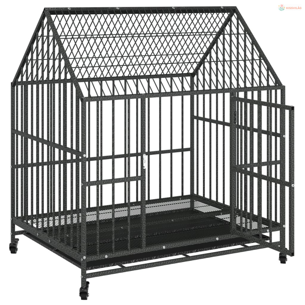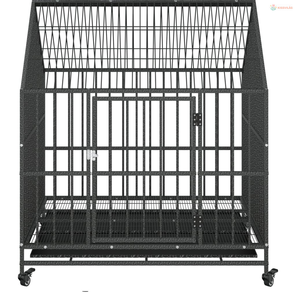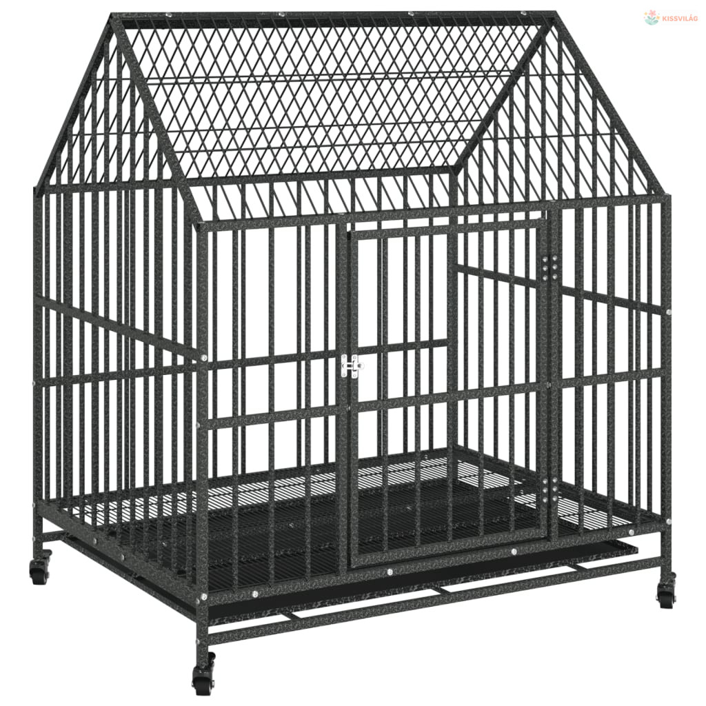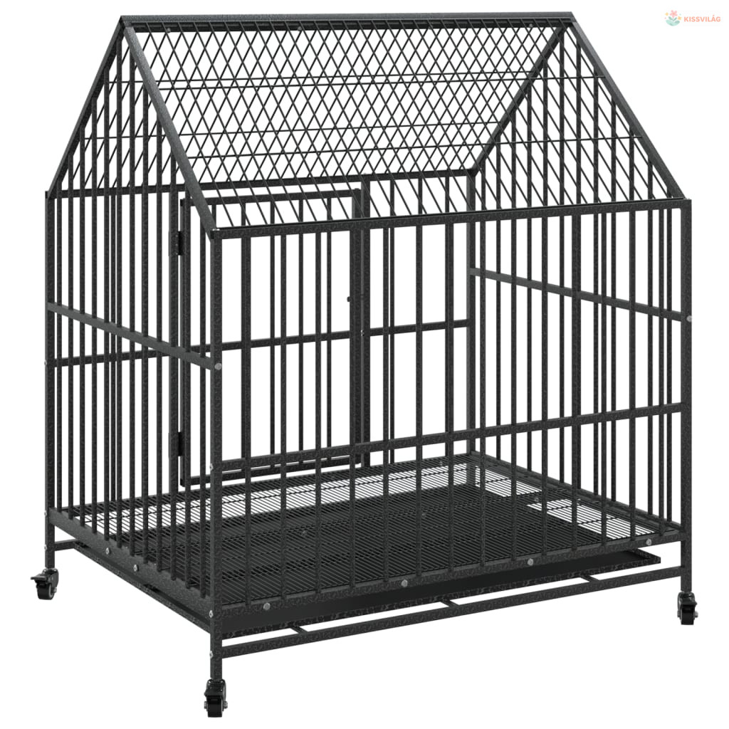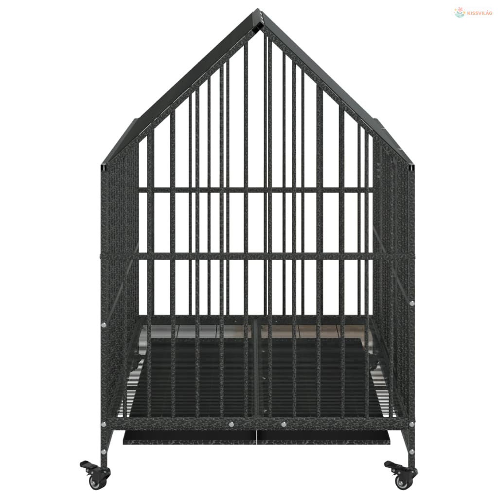 Fekete horganyzott acél kutyaketrec kerekekkel