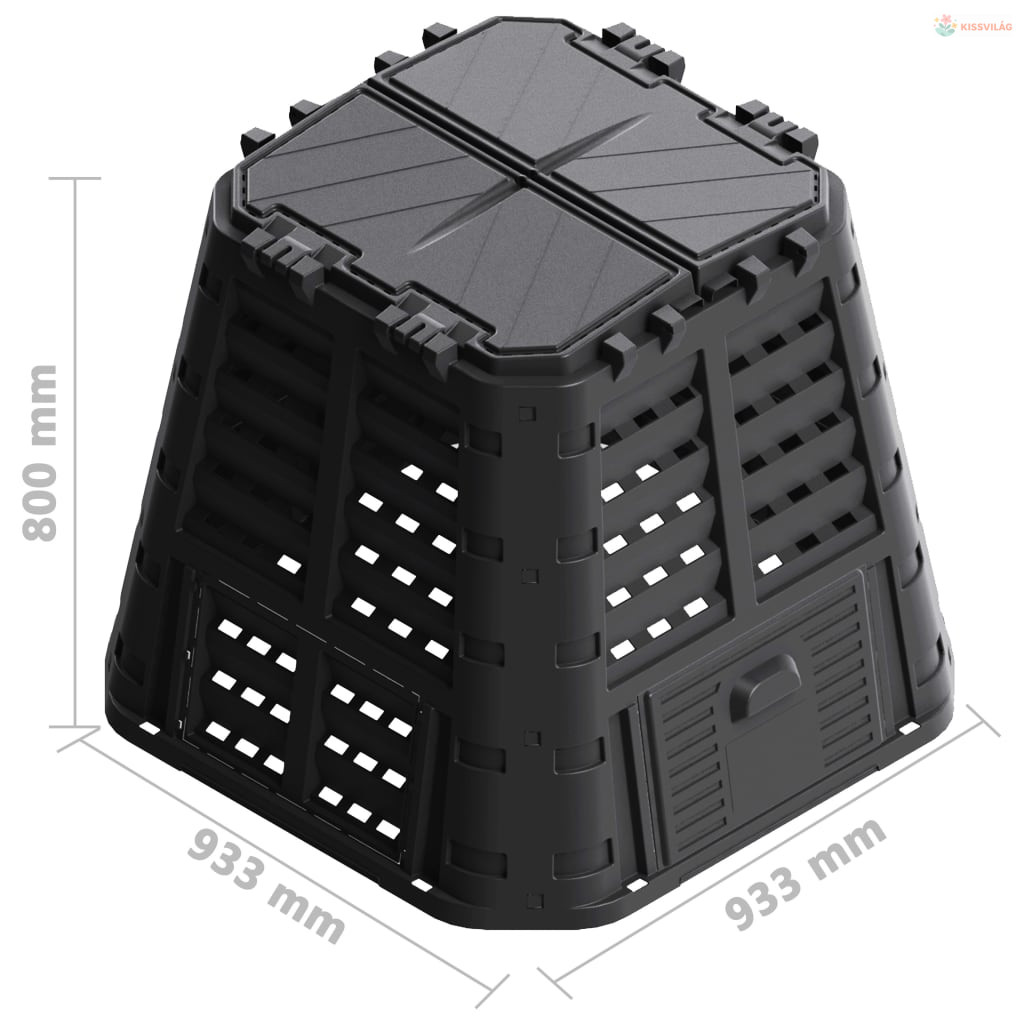 Fekete kerti komposztáló 93,3 x 93,3 x 80 cm 480 l