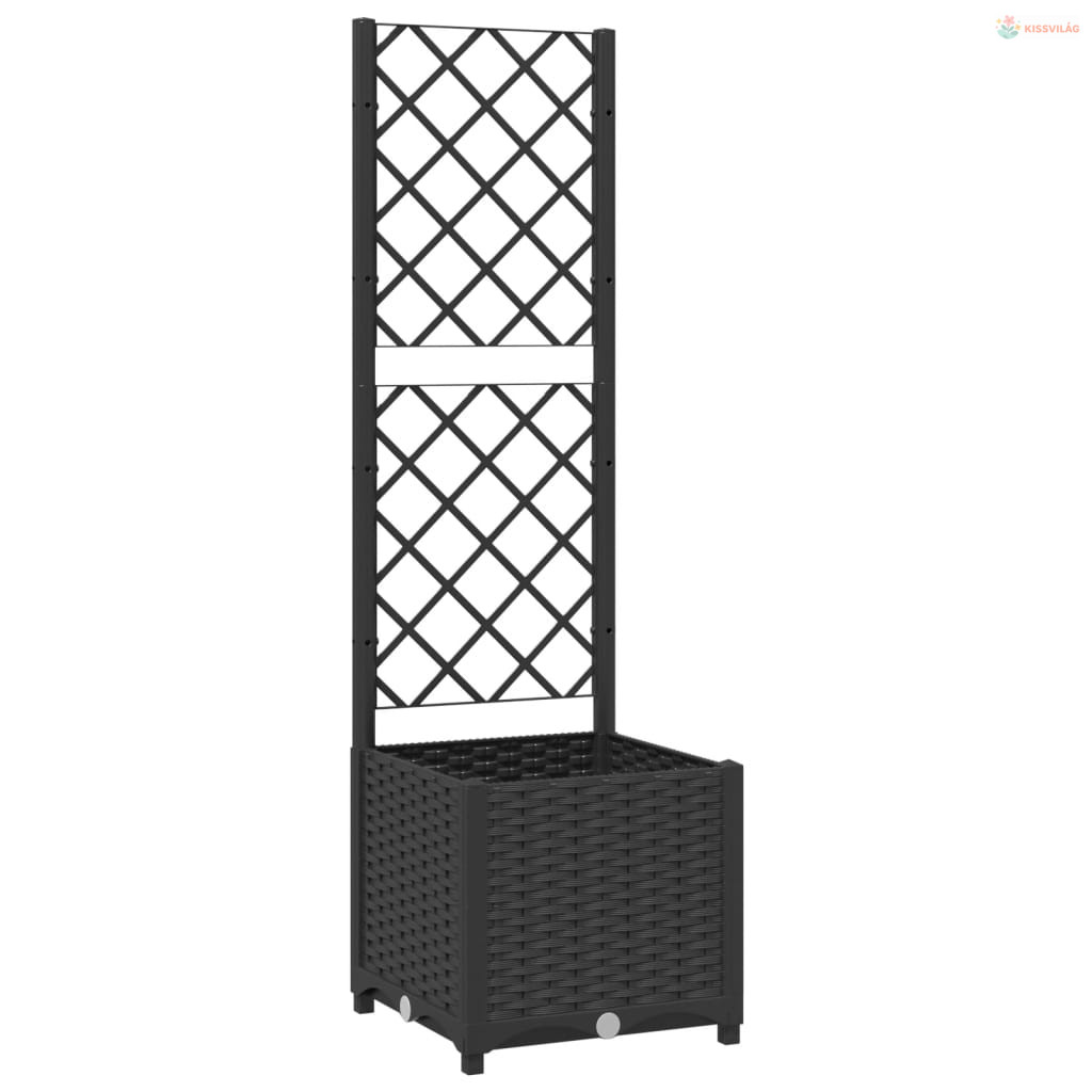 Fekete kerti virágláda ráccsal 40 x 40 x 136 cm PP