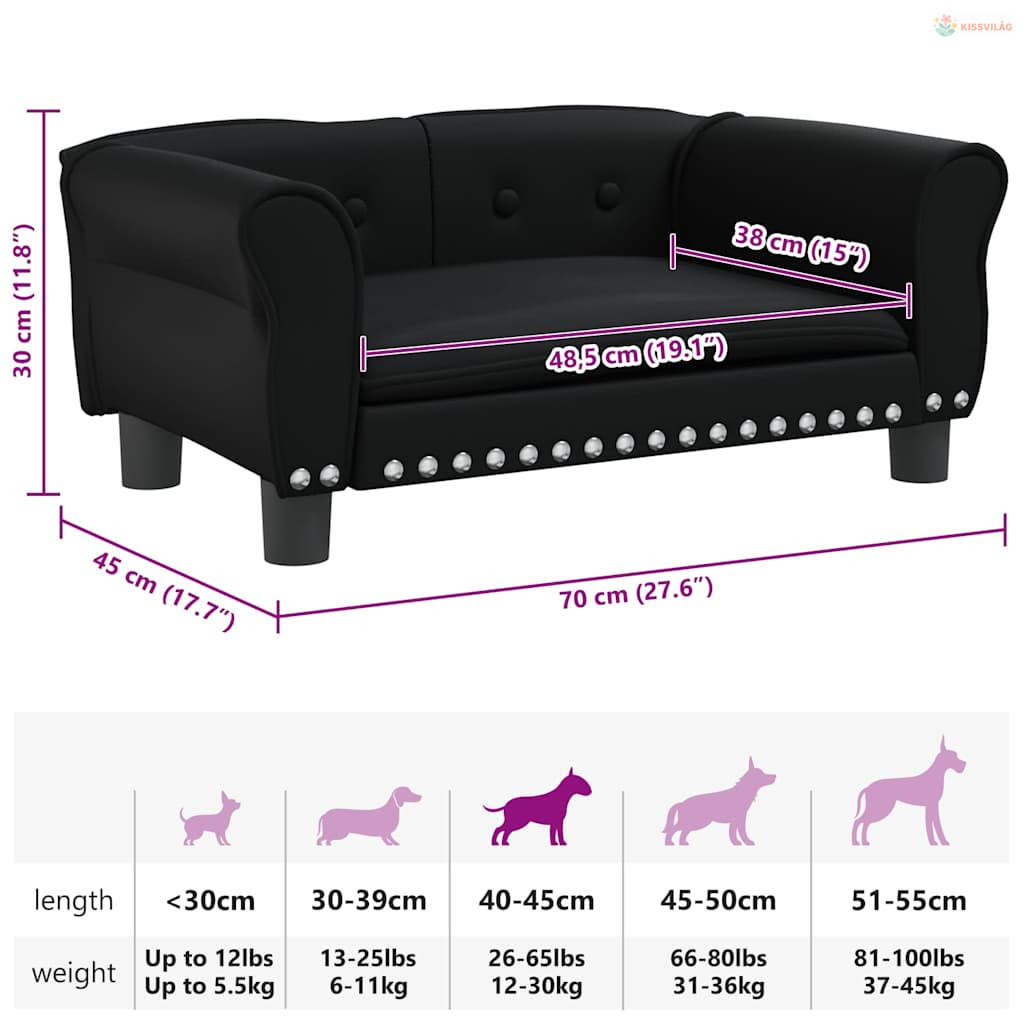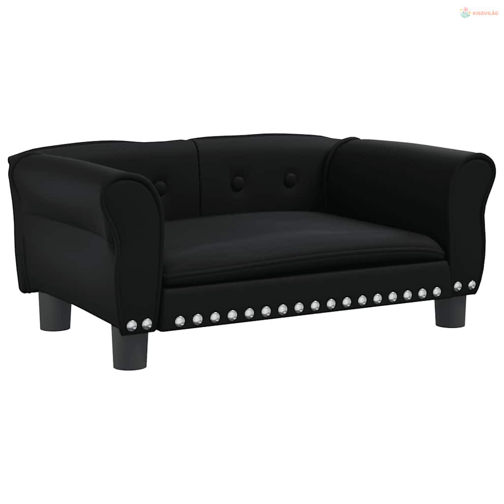 Fekete műbőr kutyaágy 70 x 45 x 30 cm