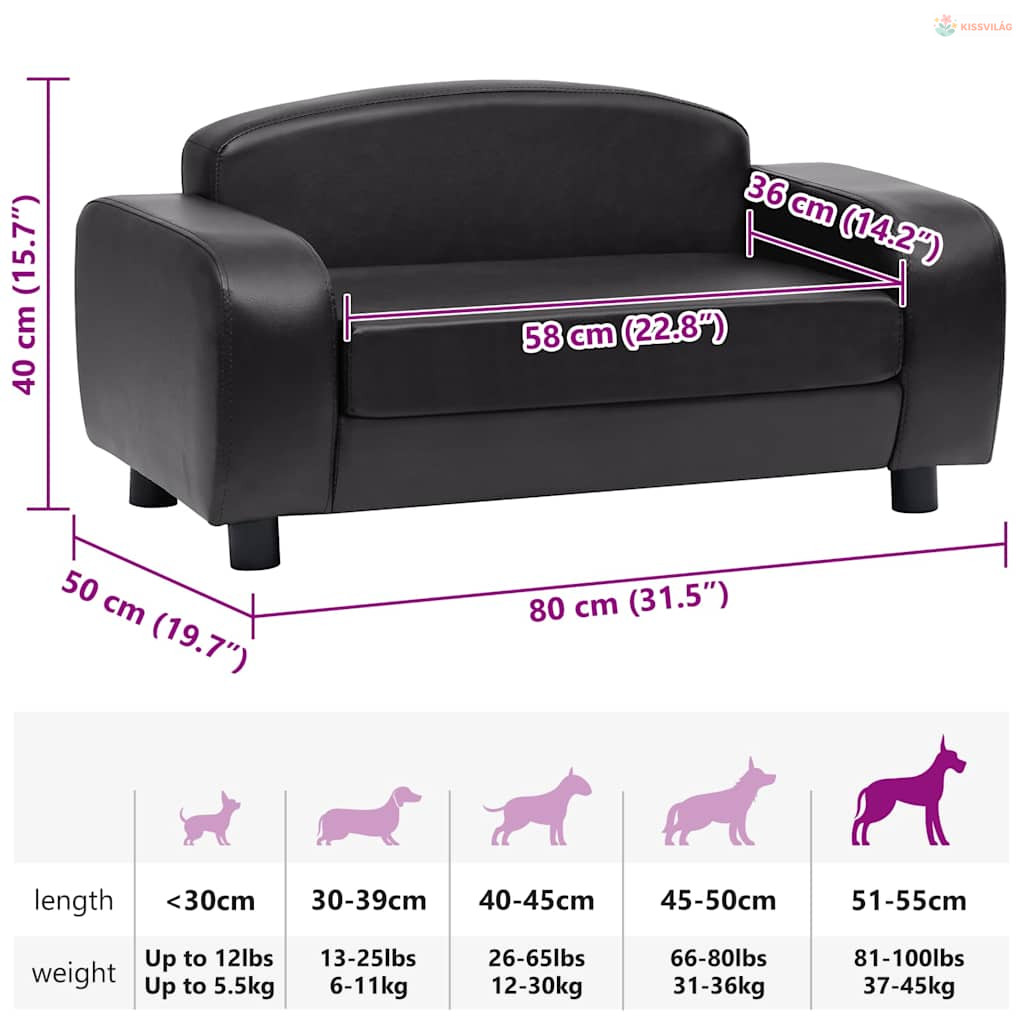 Fekete műbőr kutyakanapé 80 x 50 x 40 cm