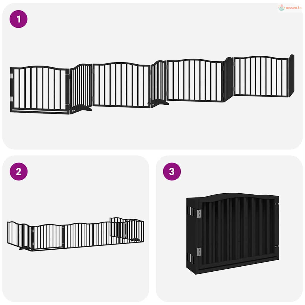 Fekete nyárfa 8 paneles összecsukható kutyakapu ajtóval 640 cm
