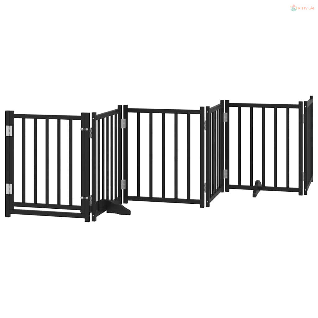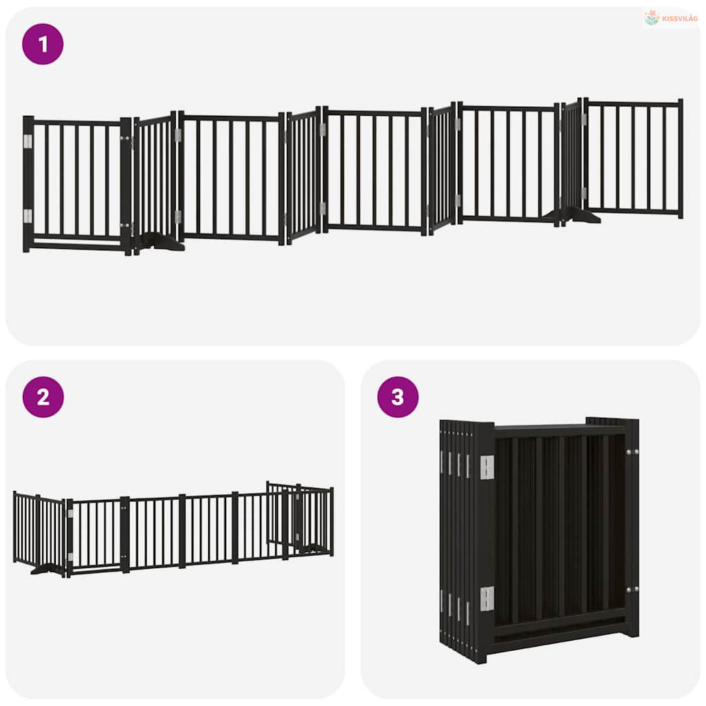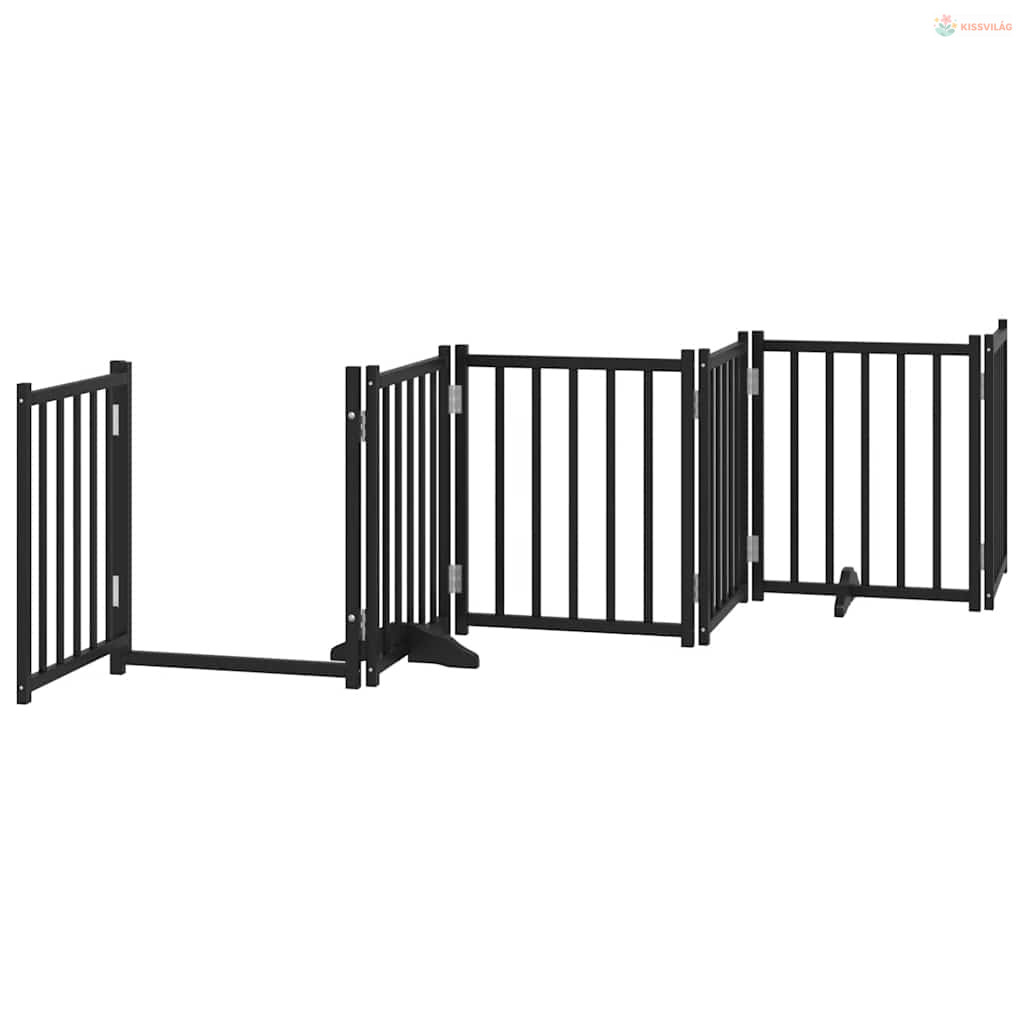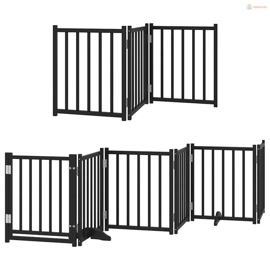 Fekete nyárfa 9 paneles összecsukható kutyakapu ajtóval 450 cm