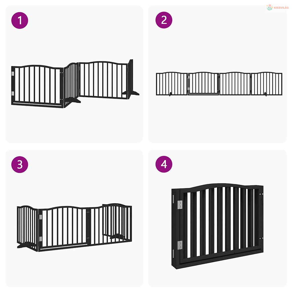 Fekete nyárfa kutyakapu összecsukható ajtóval, 4 panellel, 320 cm