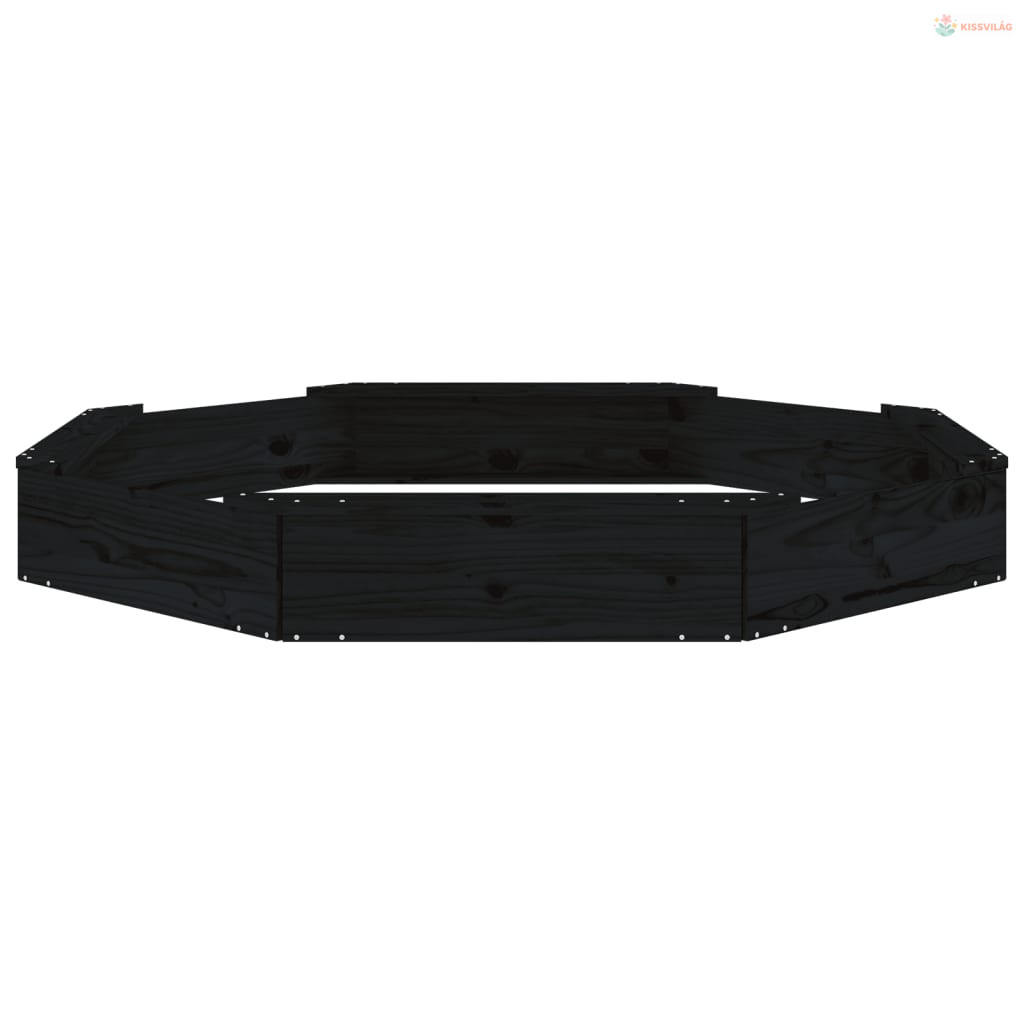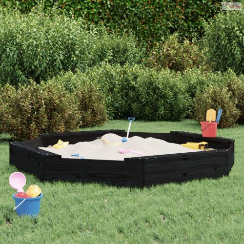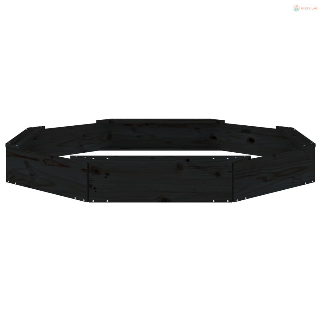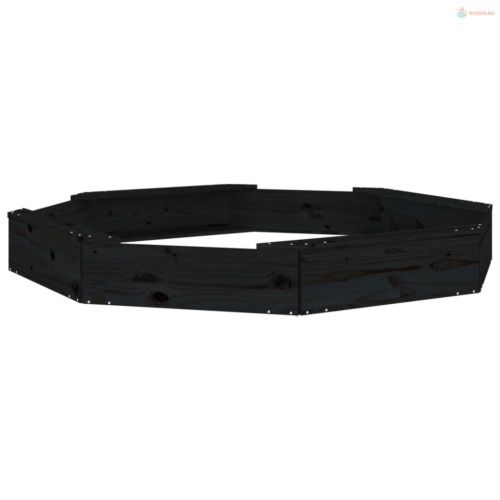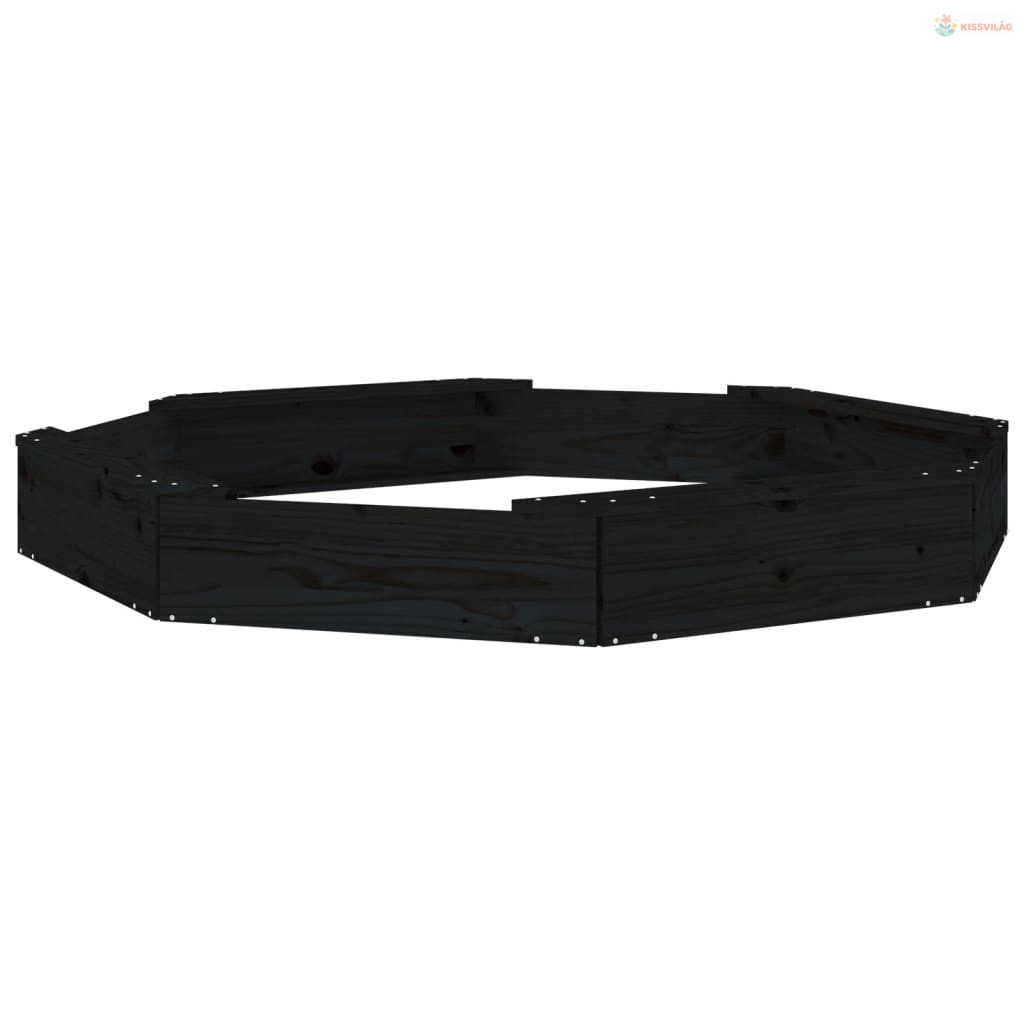 Fekete nyolcszög alakú tömör fenyőfa homokozó ülésekkel