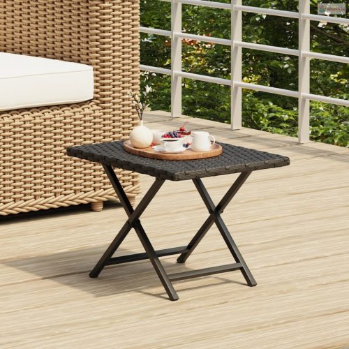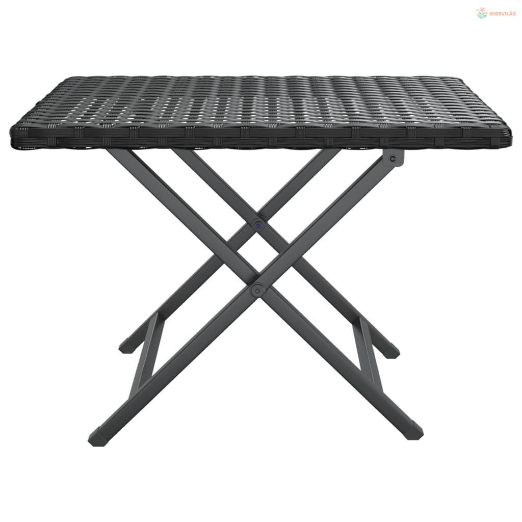 Fekete összecsukható polyrattan asztal 45 x 35 x 32 cm