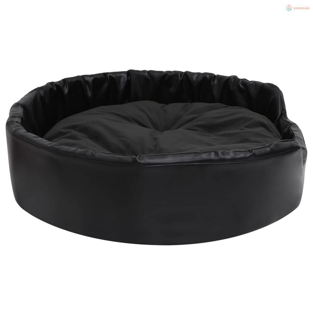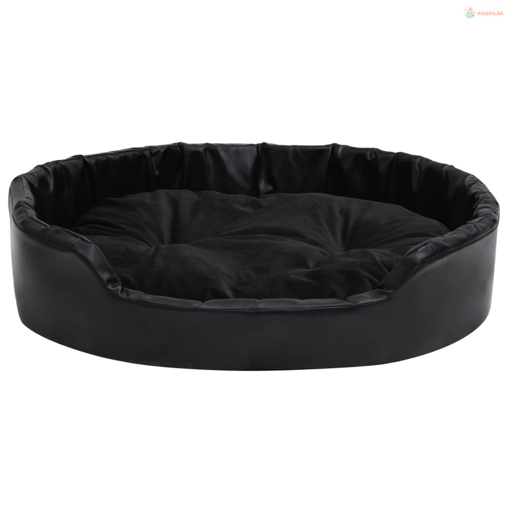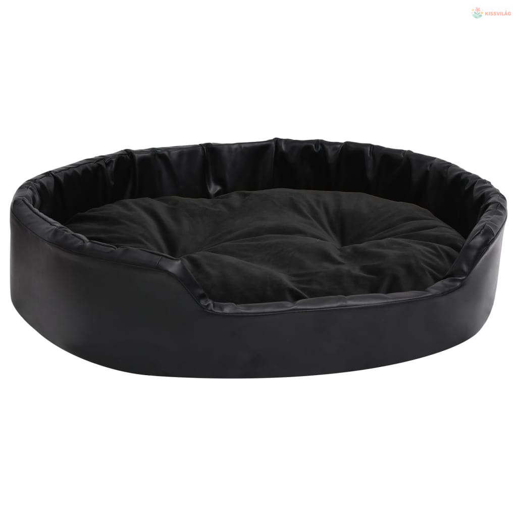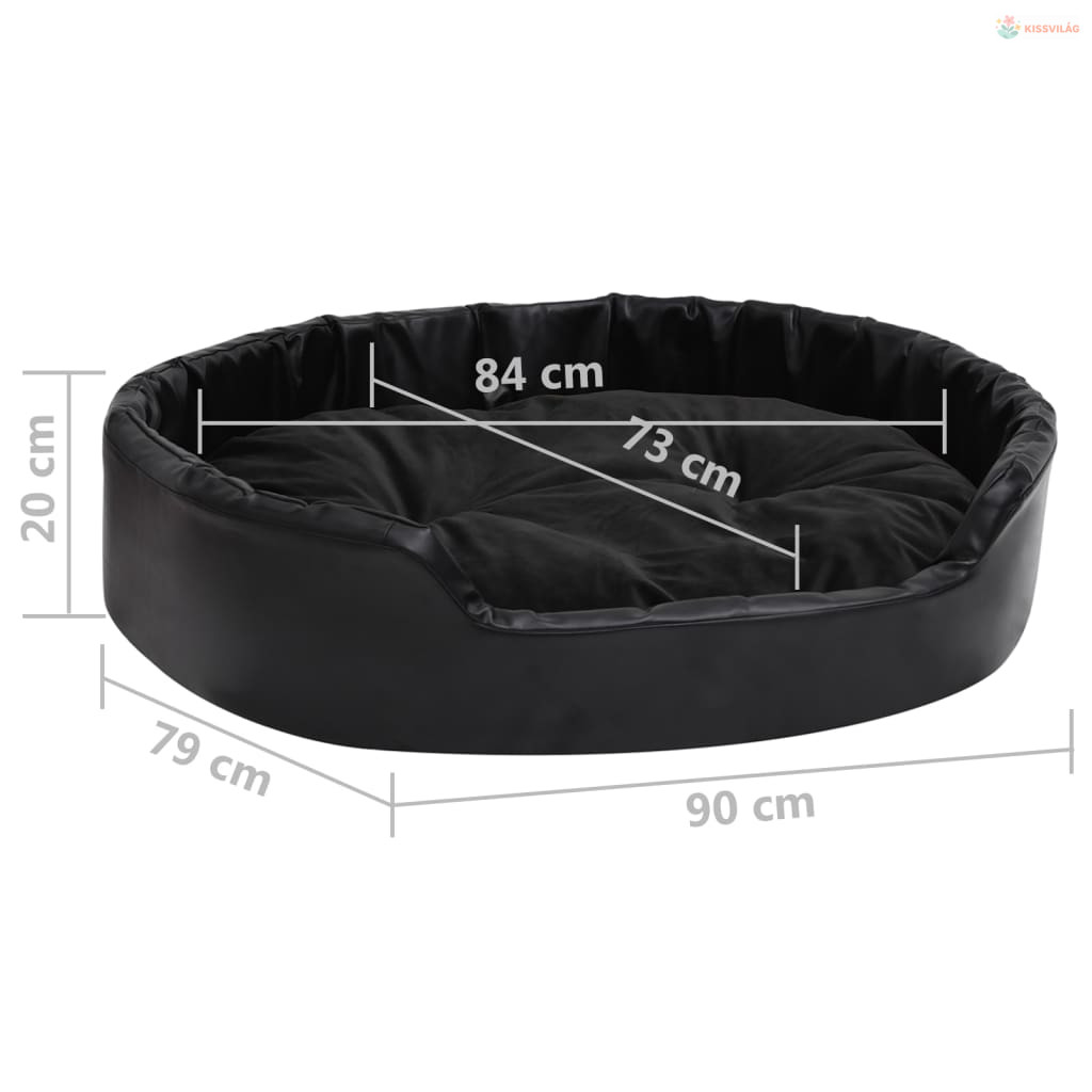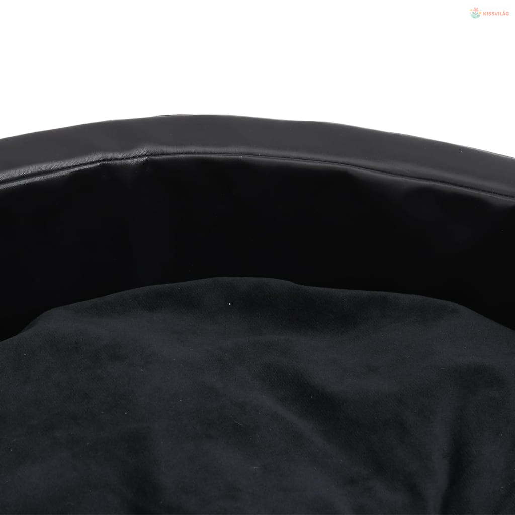 Fekete plüss és műbőr kutyaágy 90 x 79 x 20 cm