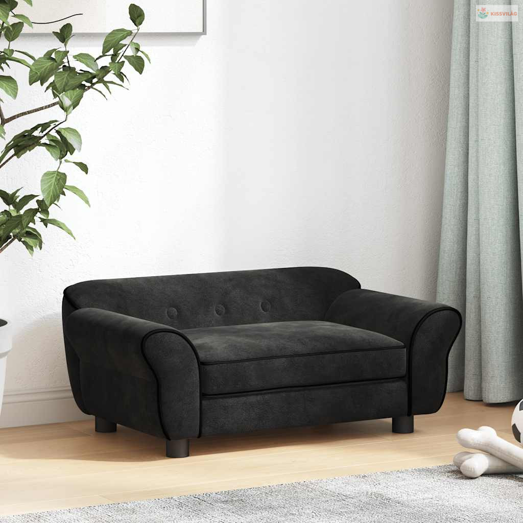 Fekete plüss kutyakanapé 72 x 45 x 30 cm