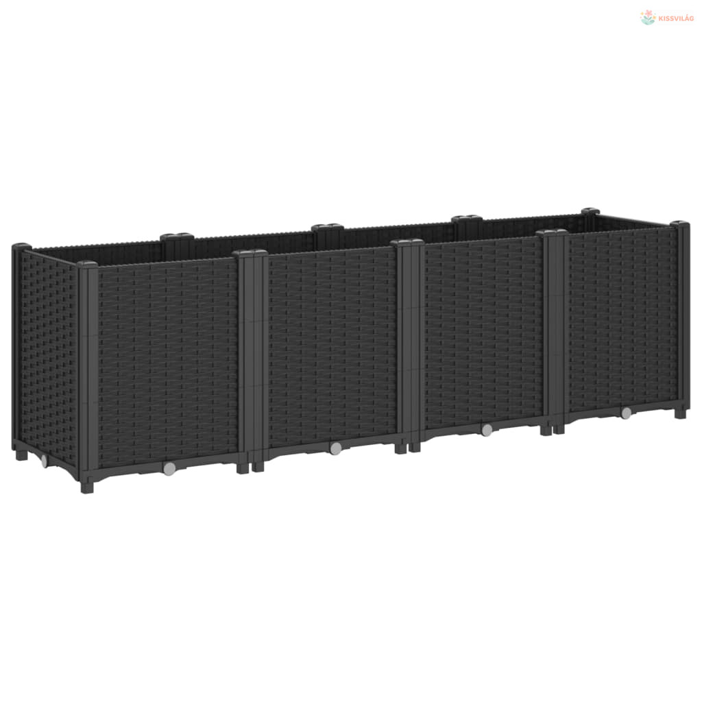 Fekete polipropilén kerti ültetőláda 160 x 40 x 53 cm