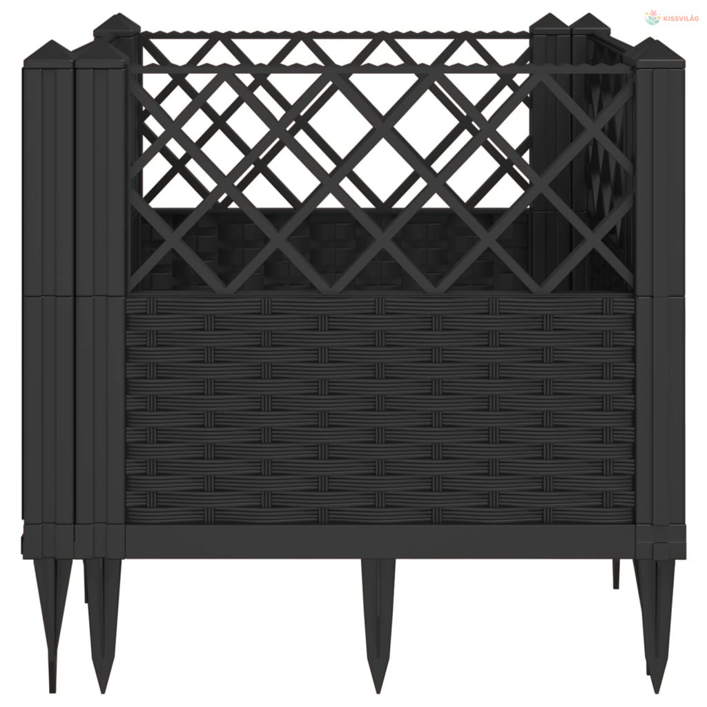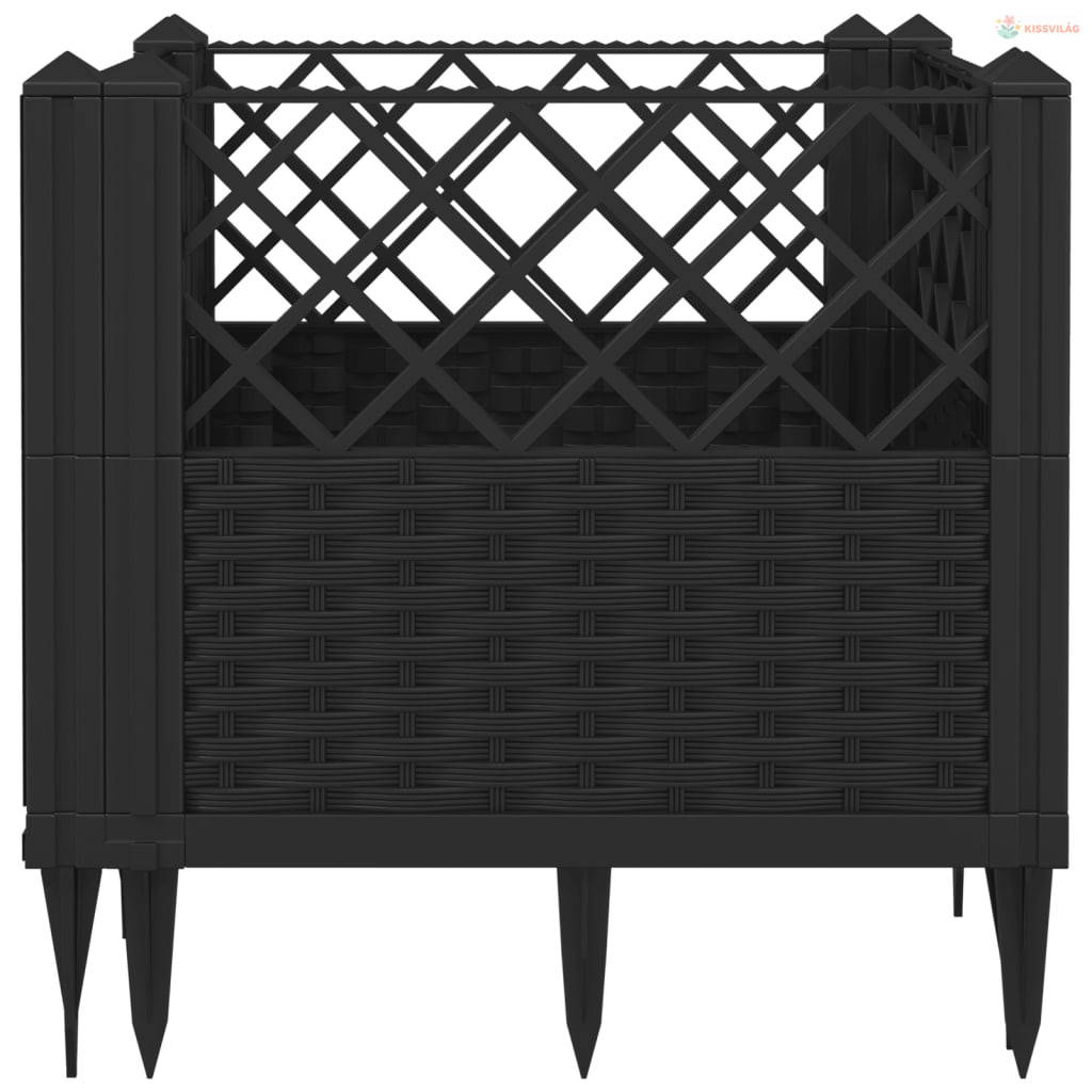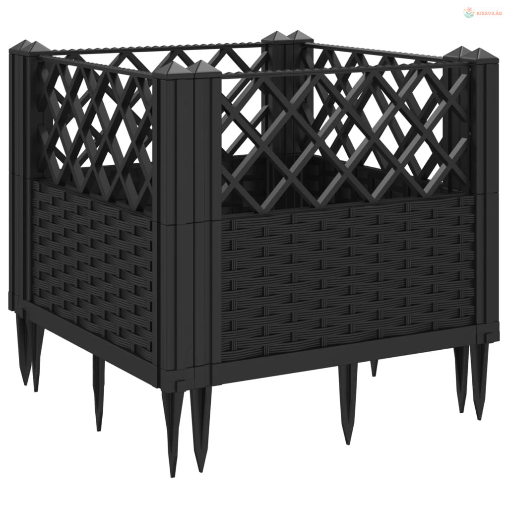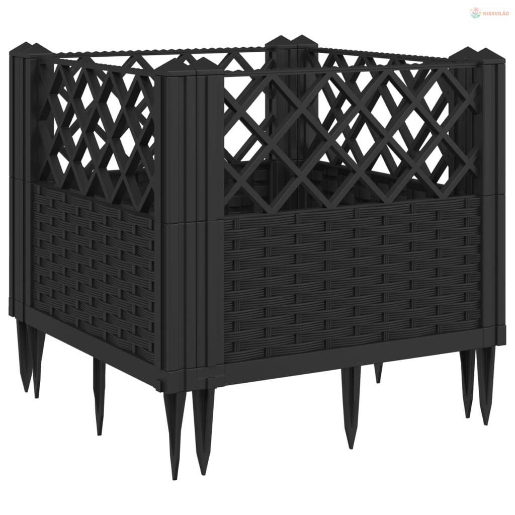 Fekete polipropilén kerti virágláda cövekekkel 43,5x43,5x43,5cm