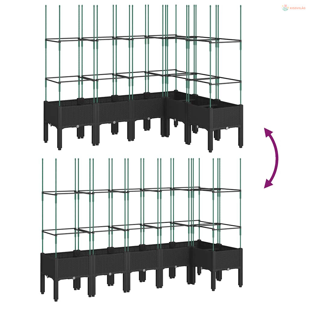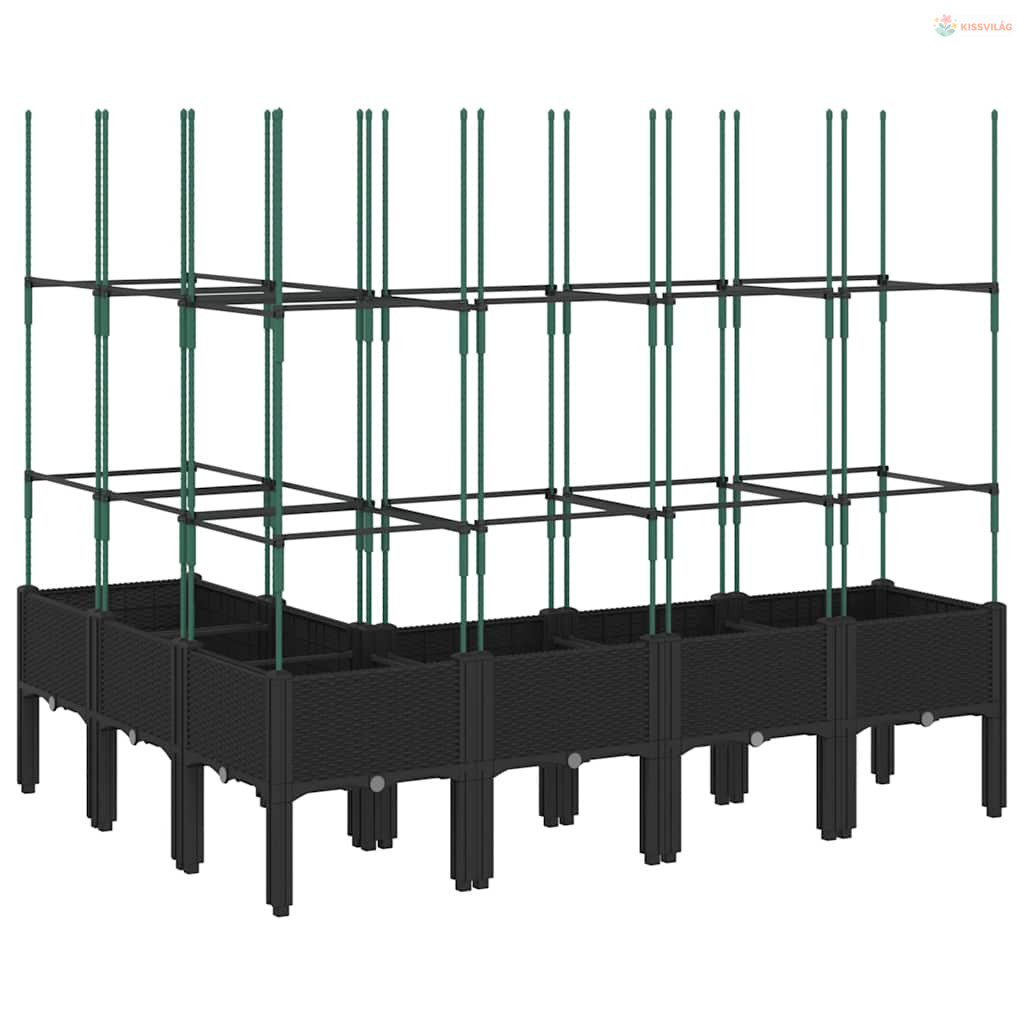 Fekete polipropilén rácsos kerti ültetőláda 160x120x142,5 cm