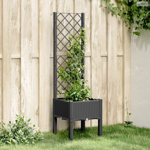Fekete polipropilén rácsos kerti ültetőláda 40 x 40 x 142 cm