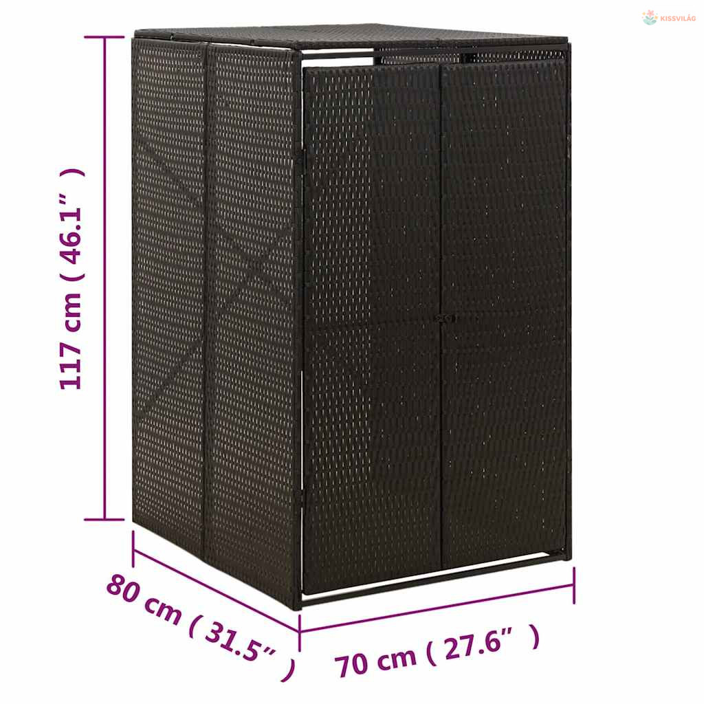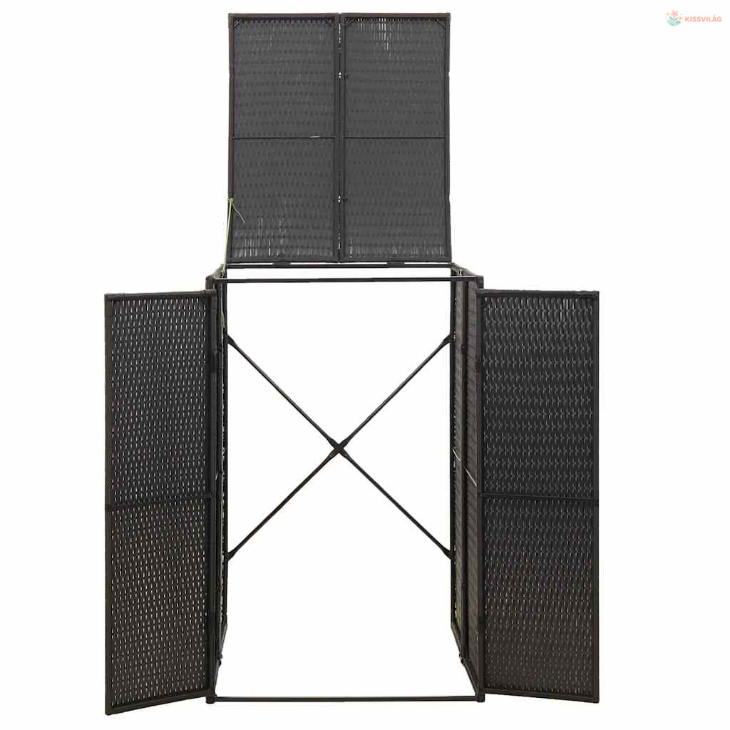 Fekete polyrattan kerekes kukatároló fészer 70 x 80 x 117 cm
