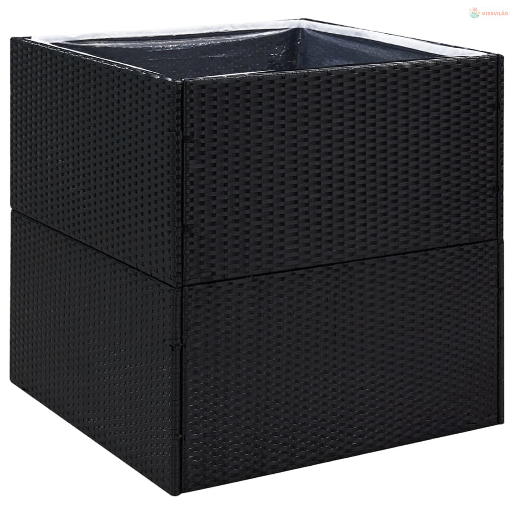 Fekete polyrattan kerti ültetőláda 80x80x80 cm