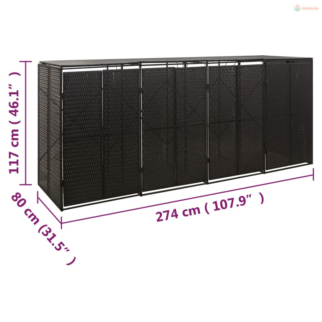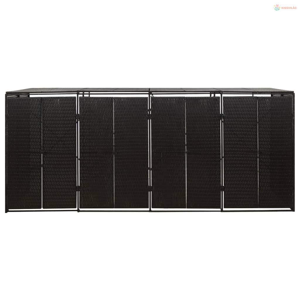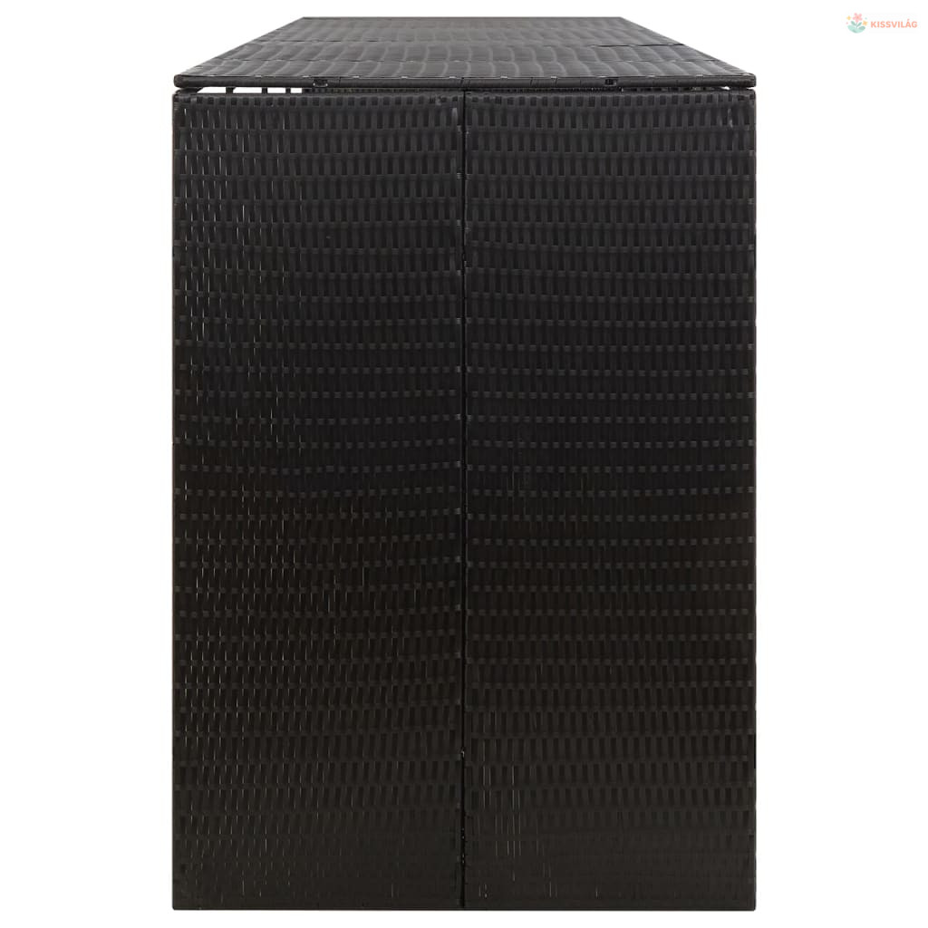 Fekete polyrattan négyes kerekeskuka tárolófészer 274x80x117 cm