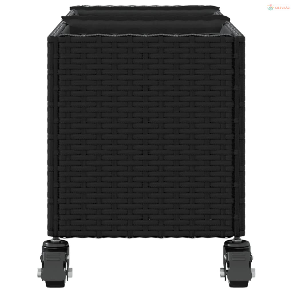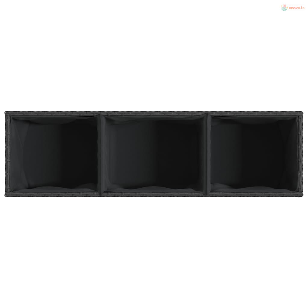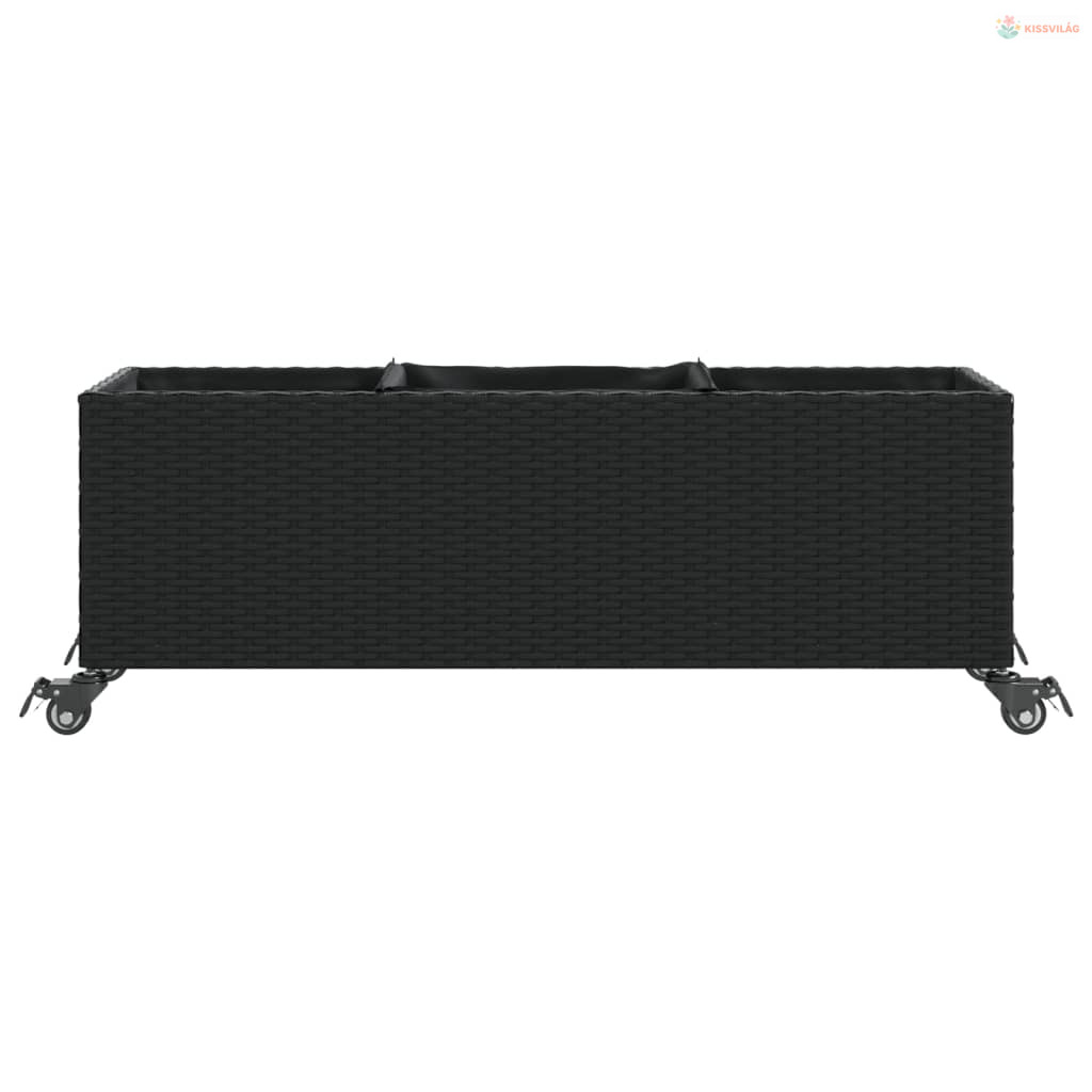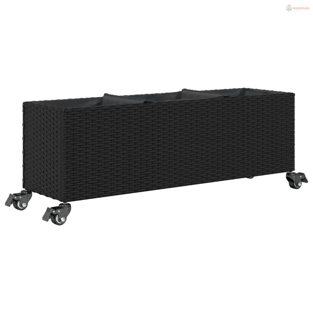 Fekete polyrattan növénytartó kerékkel/3 cseréppel 107x32x38 cm