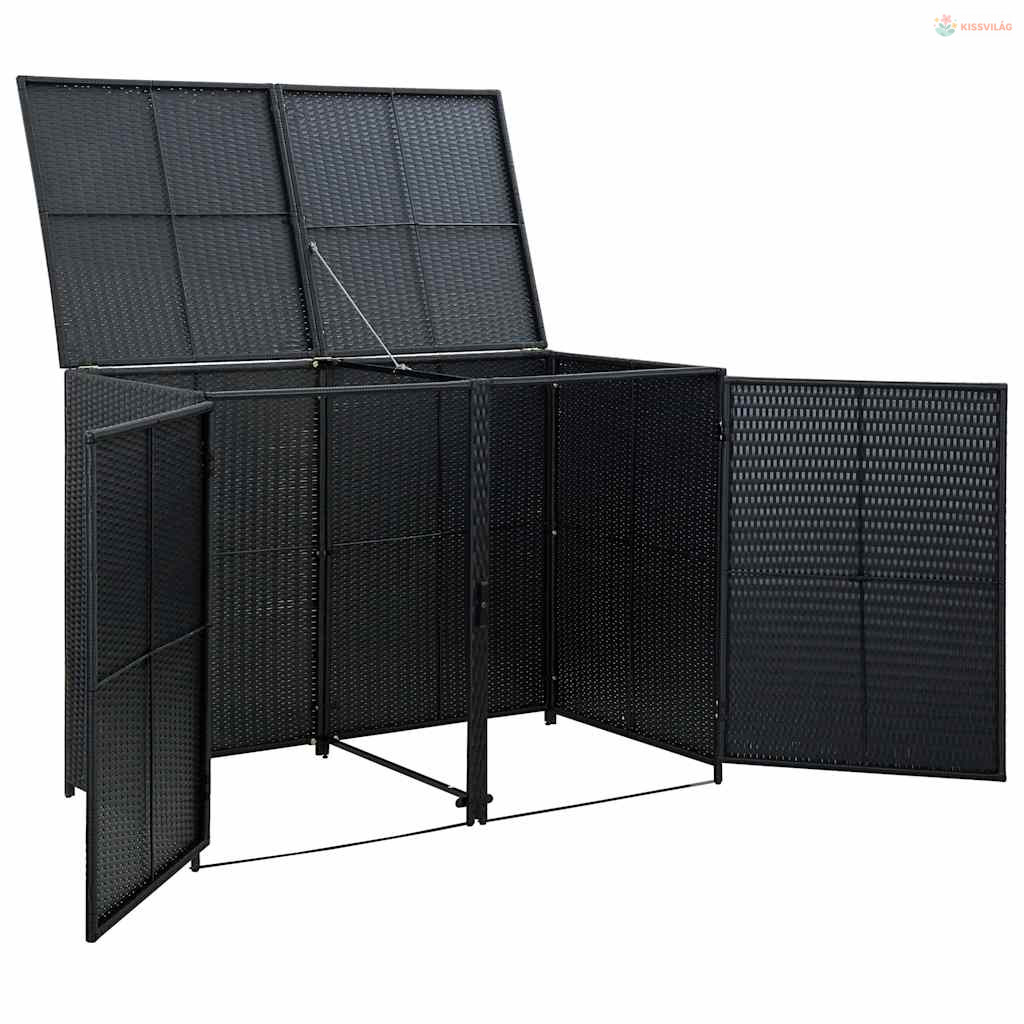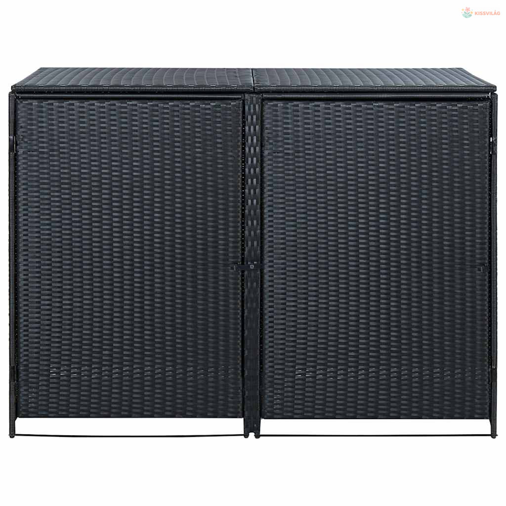 Fekete rattan dupla tároló gurulós kukához 148 x 80 x 111 cm