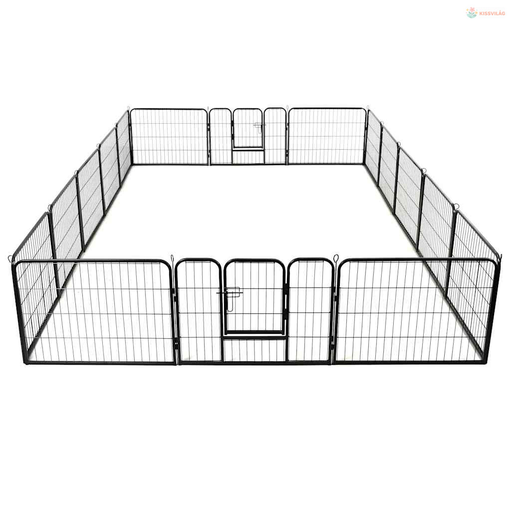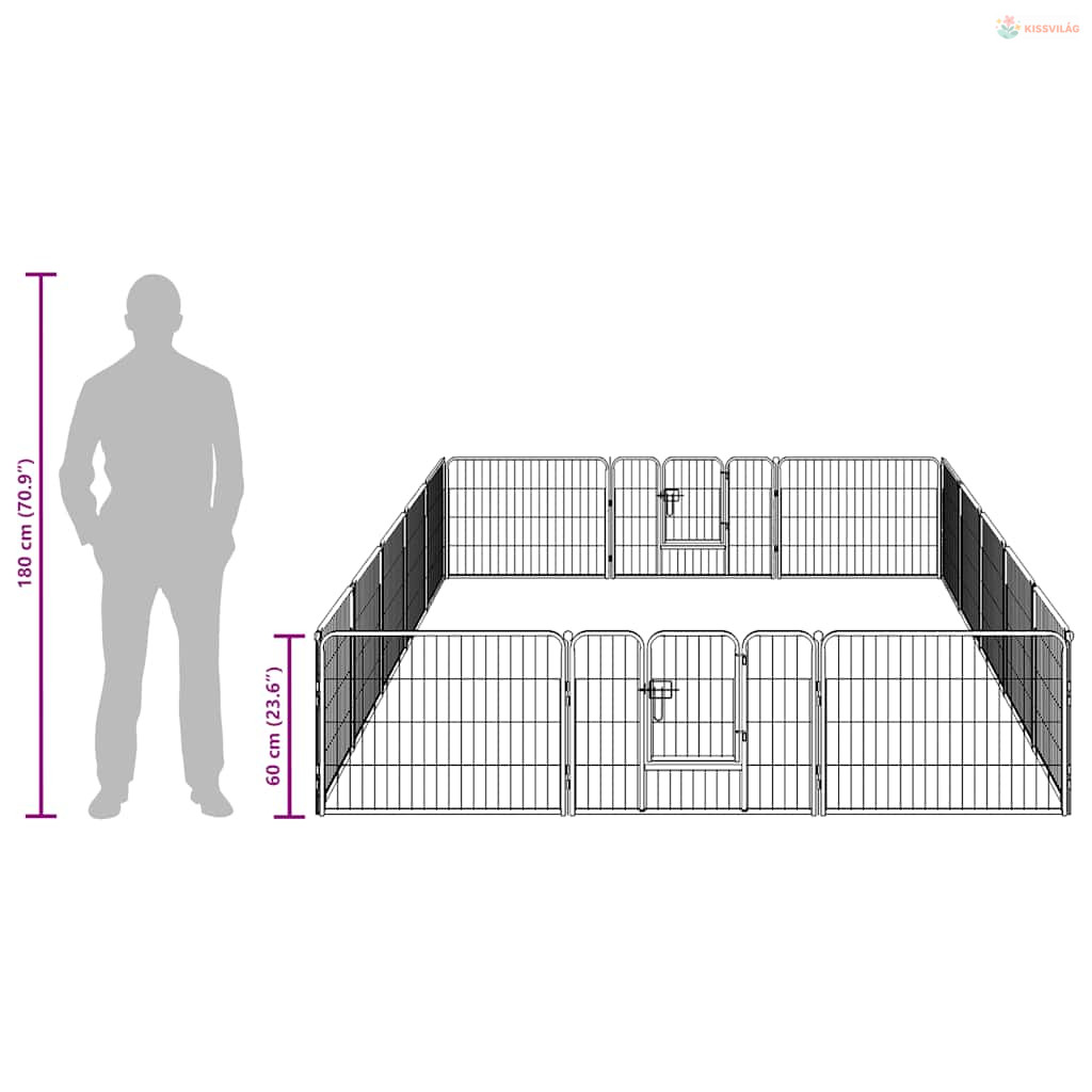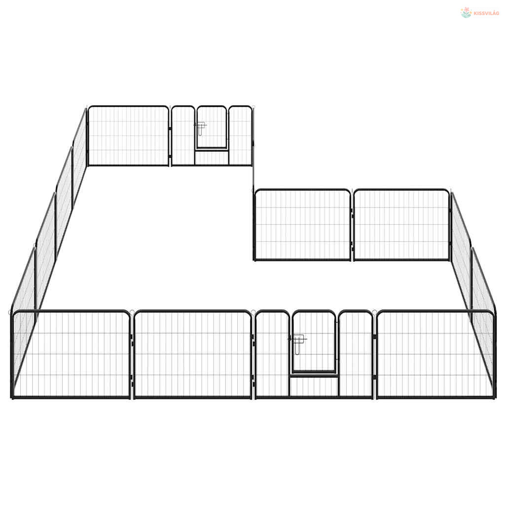Fekete színű acél kutyakennel 16 panelből 60 x 80 cm