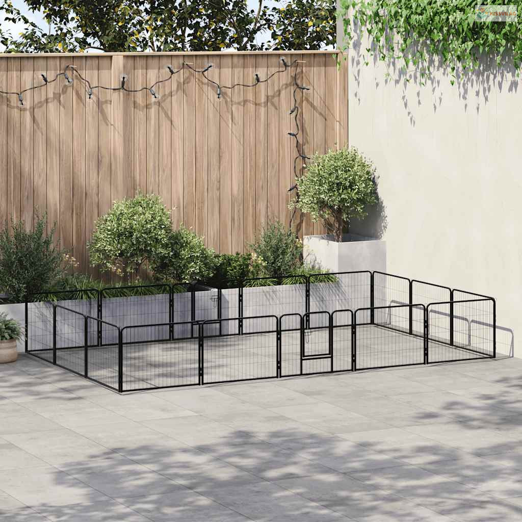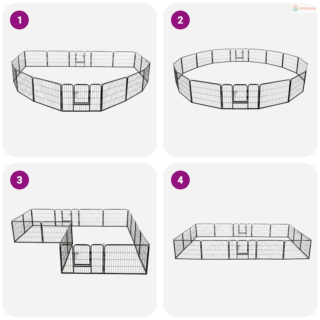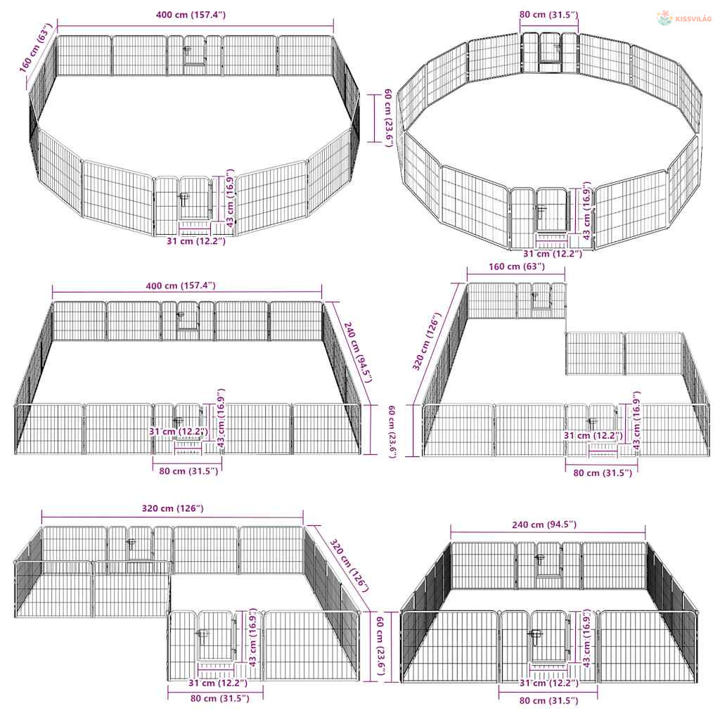 Fekete színű acél kutyakennel 16 panelből 60 x 80 cm