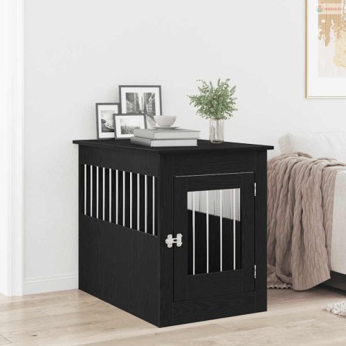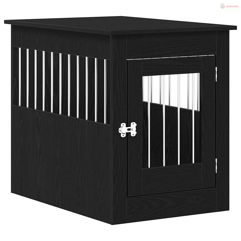 Fekete tölgyfa kutyaketrec bútor 55 x 80 x 68 cm