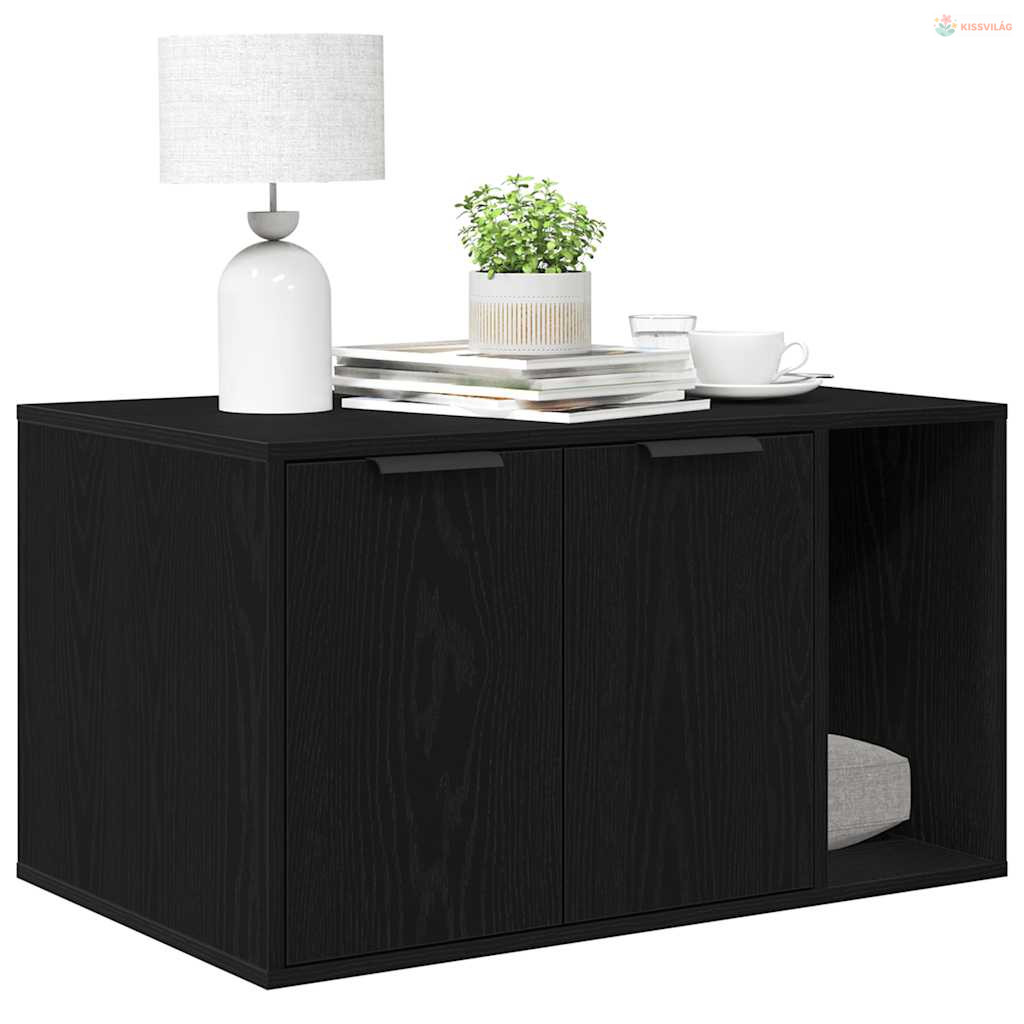 Fekete tölgyfa macskaalom tároló 80 x 50 x 45 cm