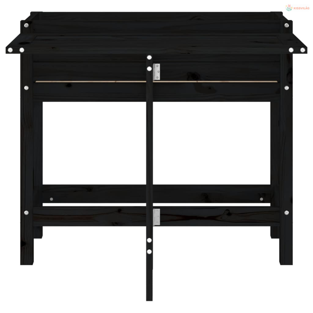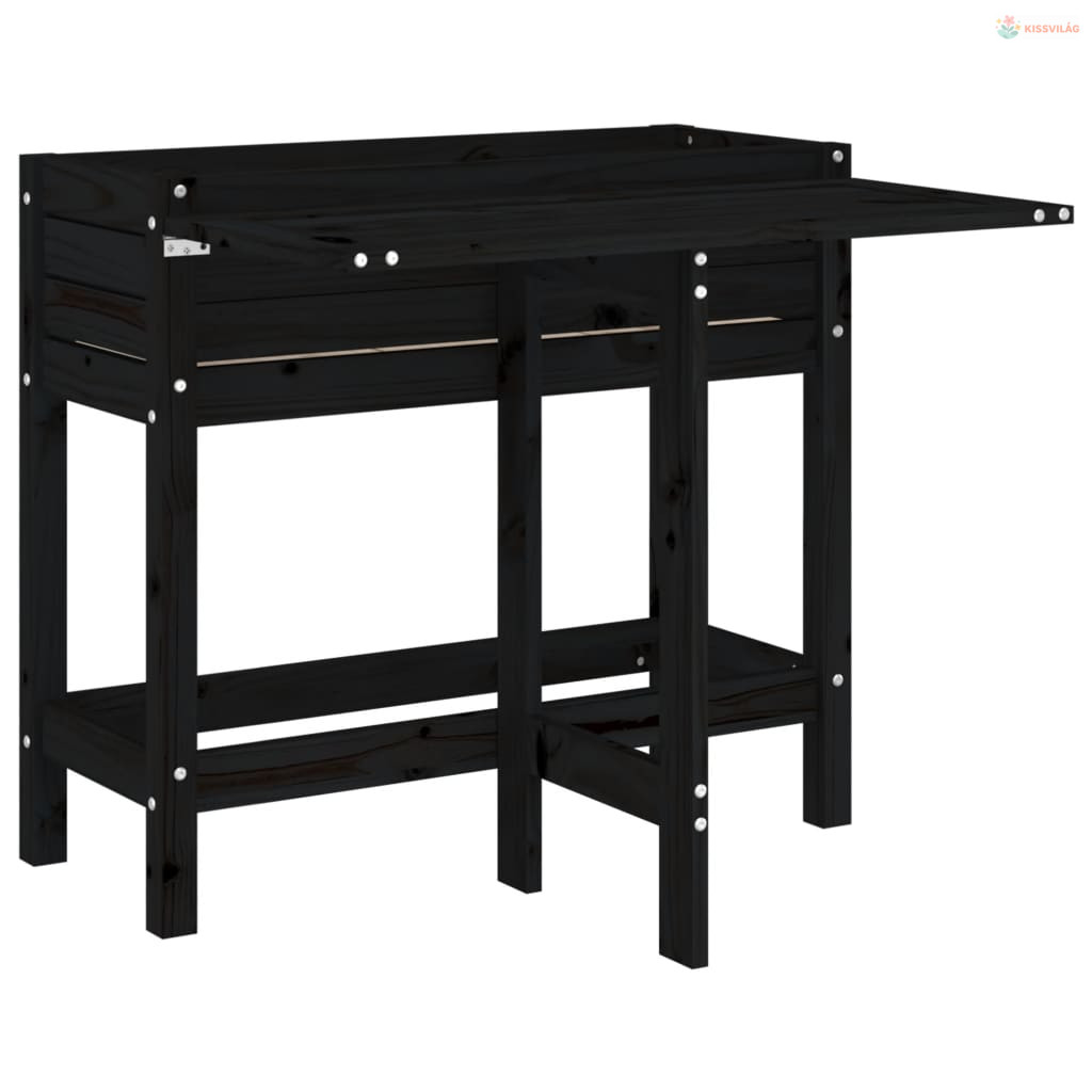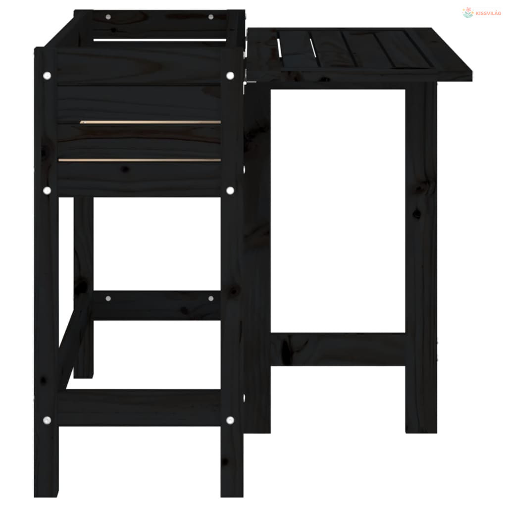 Fekete tömör fa kerti ültetőláda összecsukható asztallappal