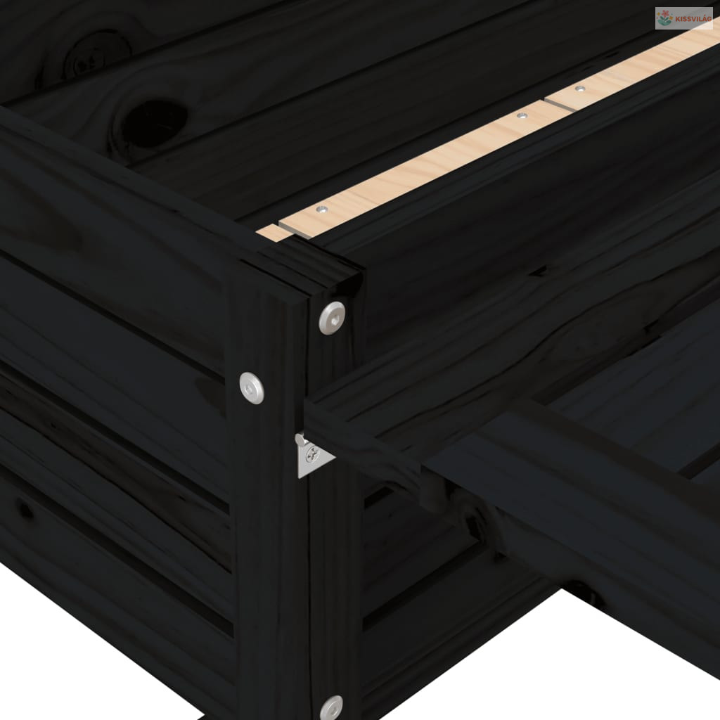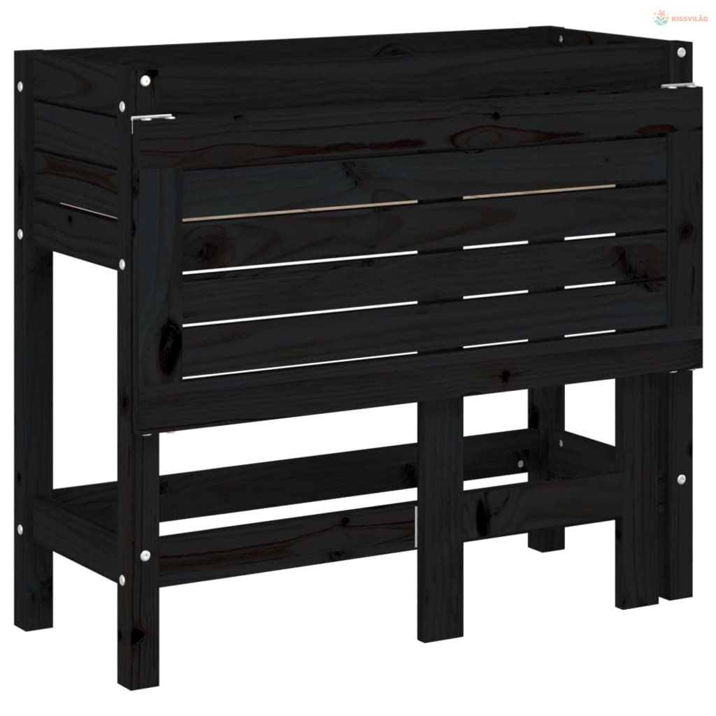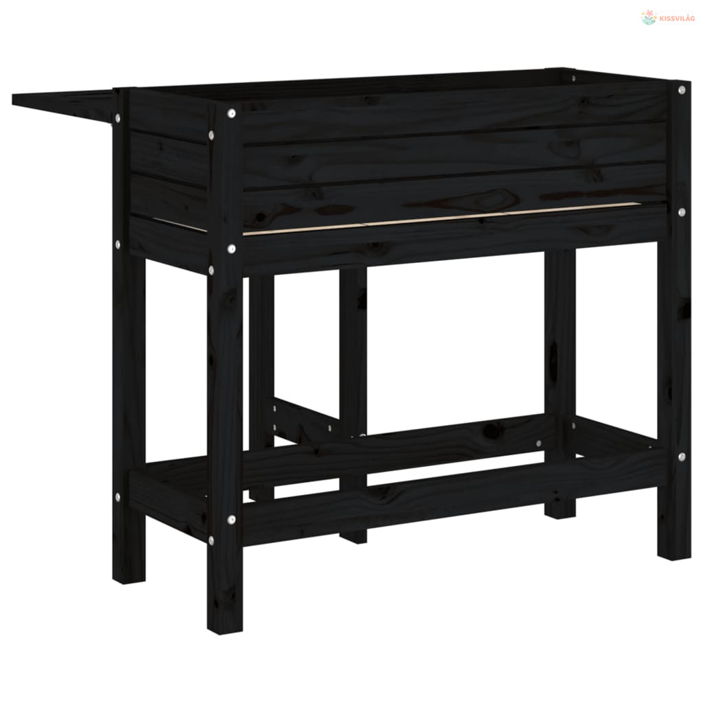 Fekete tömör fa kerti ültetőláda összecsukható asztallappal