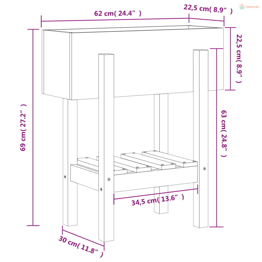 • Bőséges hely: Az ültetőláda elég széles és mély ahhoz, hogy nagy mennyiségű föld férjen el benne, és bőséges helyet kínáljon növényei, zöldségei, fűszernövényei és virágai számára. Az alsó polc emellett kerti szerszámok tárolásához is ideális.