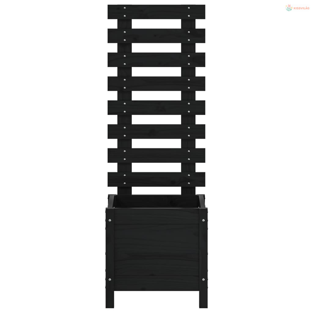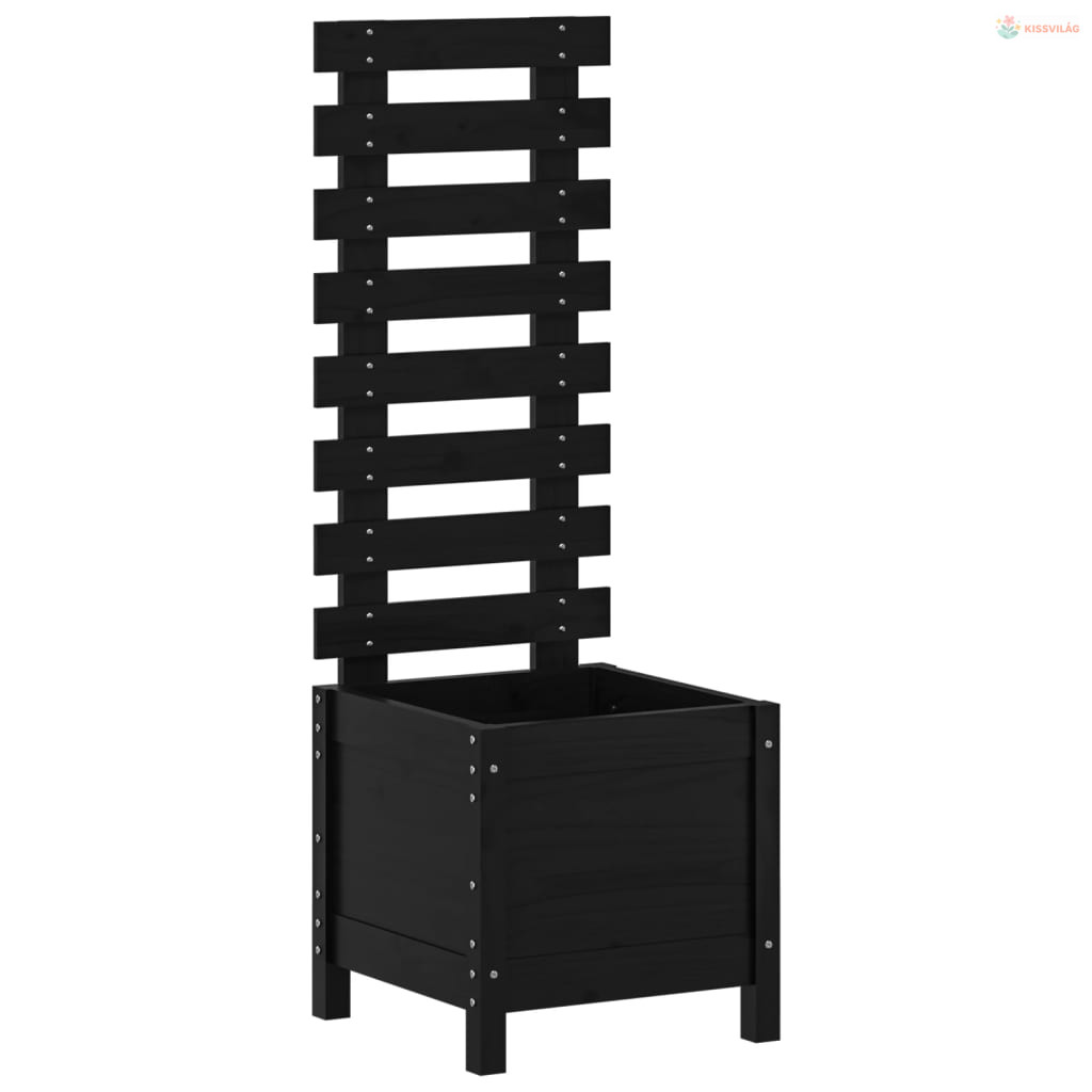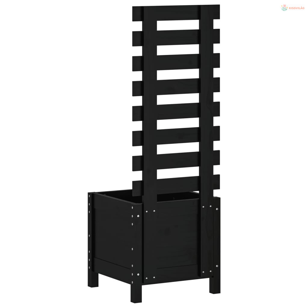 Fekete tömör fenyő kerti növénytartó állvánnyal 39x39,5x114 cm