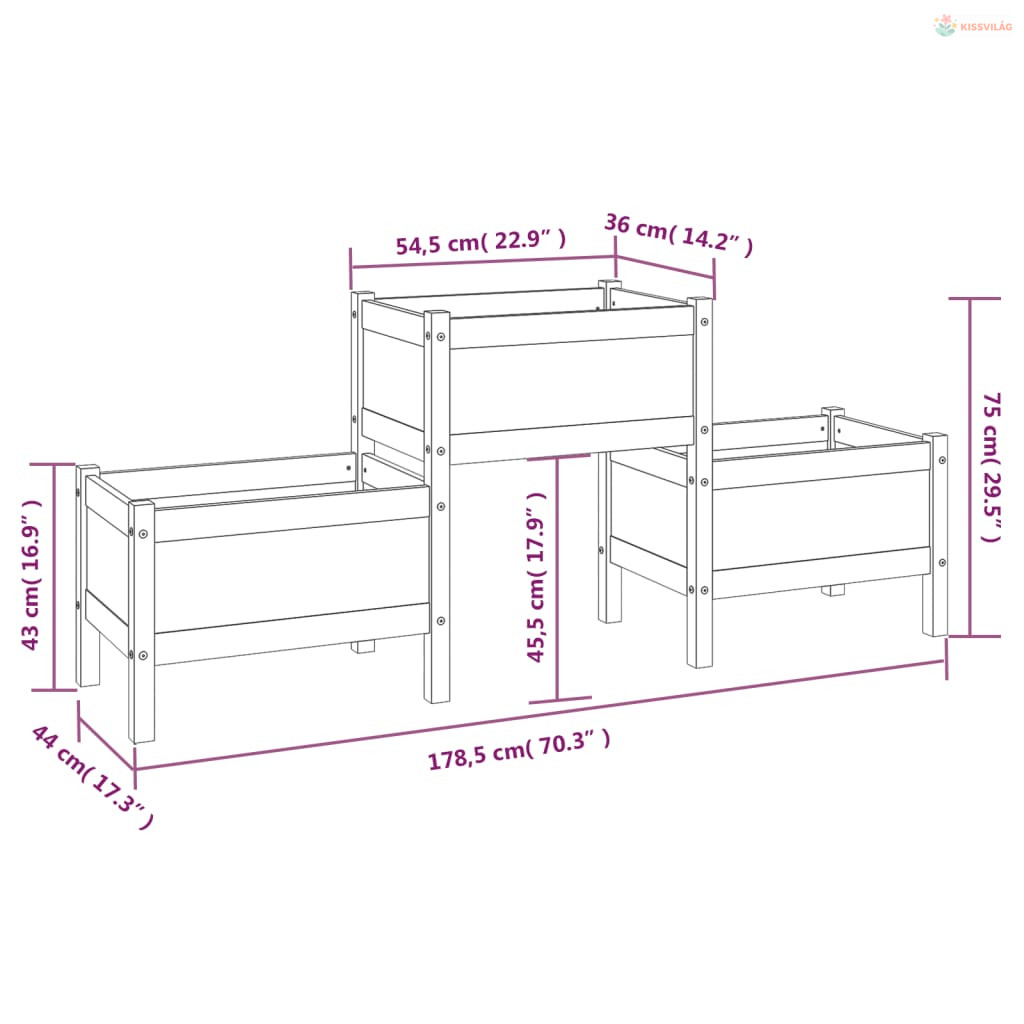 • Bőséges hely: Ebben a magaságyásban 3 virágláda található az ültetéshez, és mindegyik dobozban bőséges ültetési hely található zöldségek, fűszernövények, virágok és növények termesztéséhez.