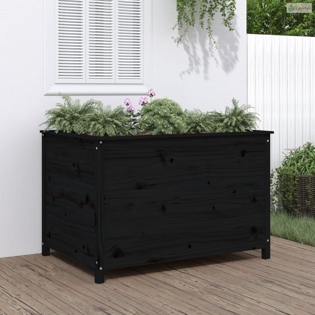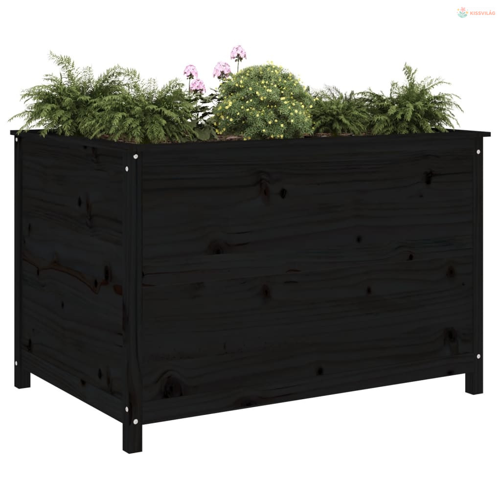 Fekete tömör fenyőfa kerti magaságyás 119,5 x 82,5 x 78 cm