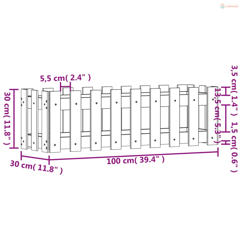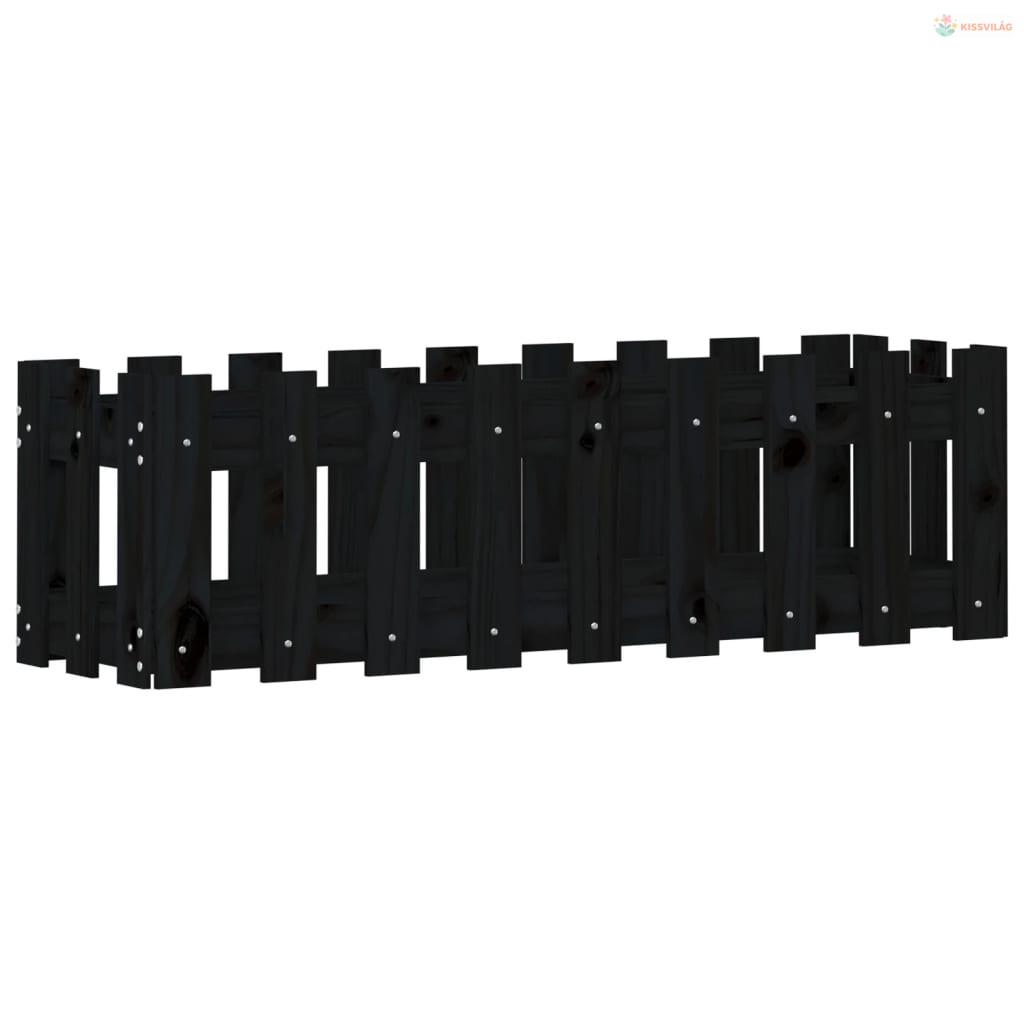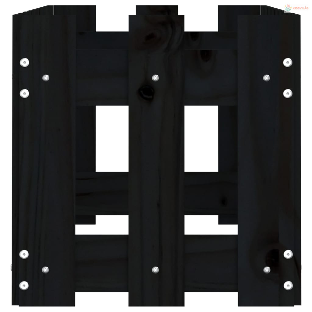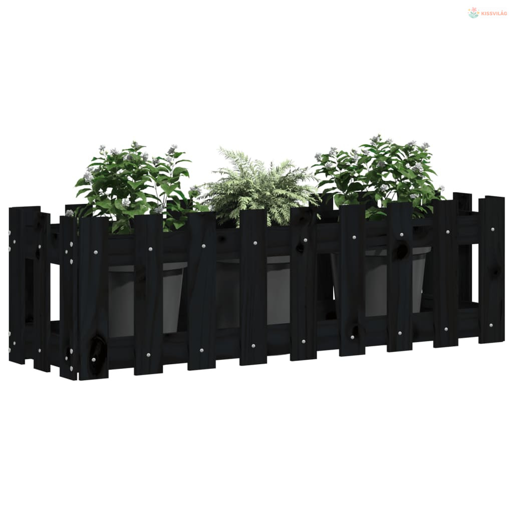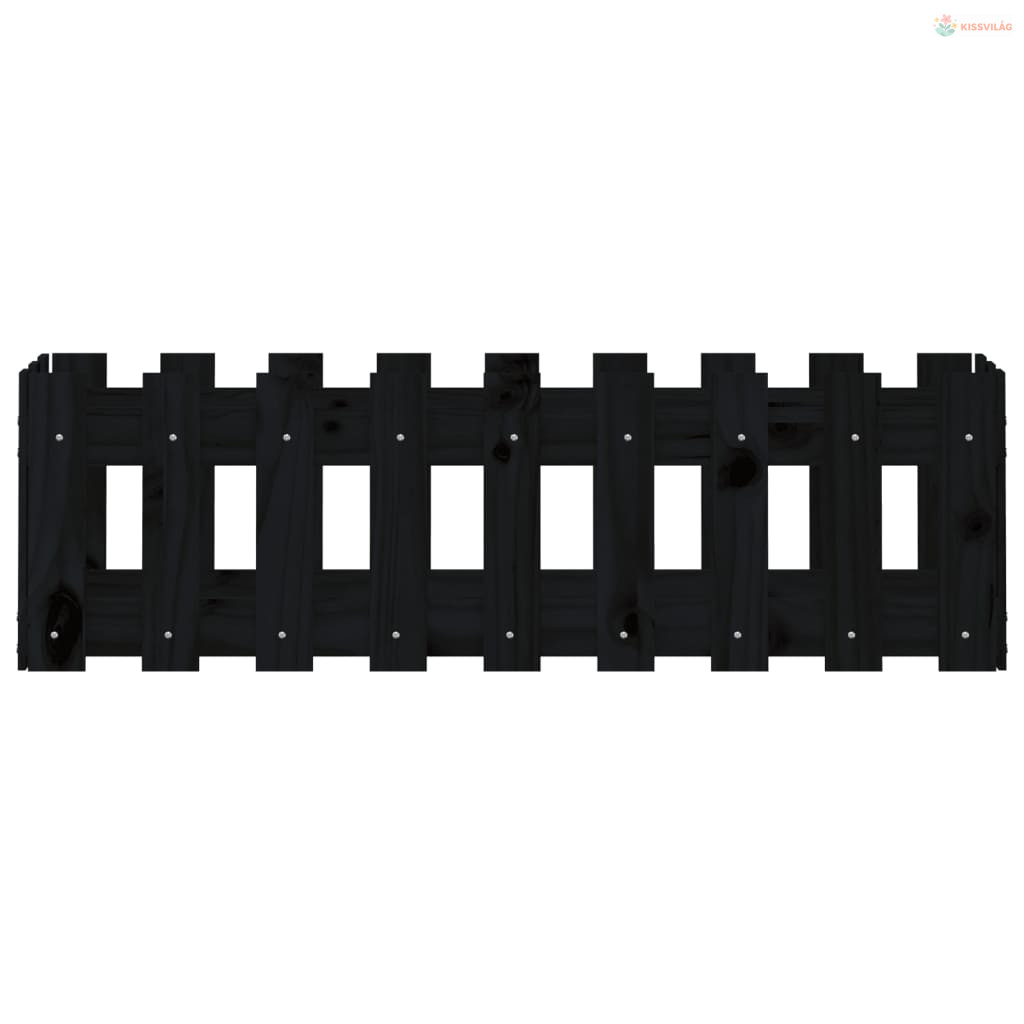Fekete tömör fenyőfa kerti magaságyás kerítéssel 100x30x30 cm