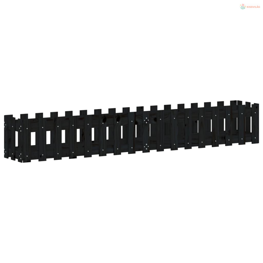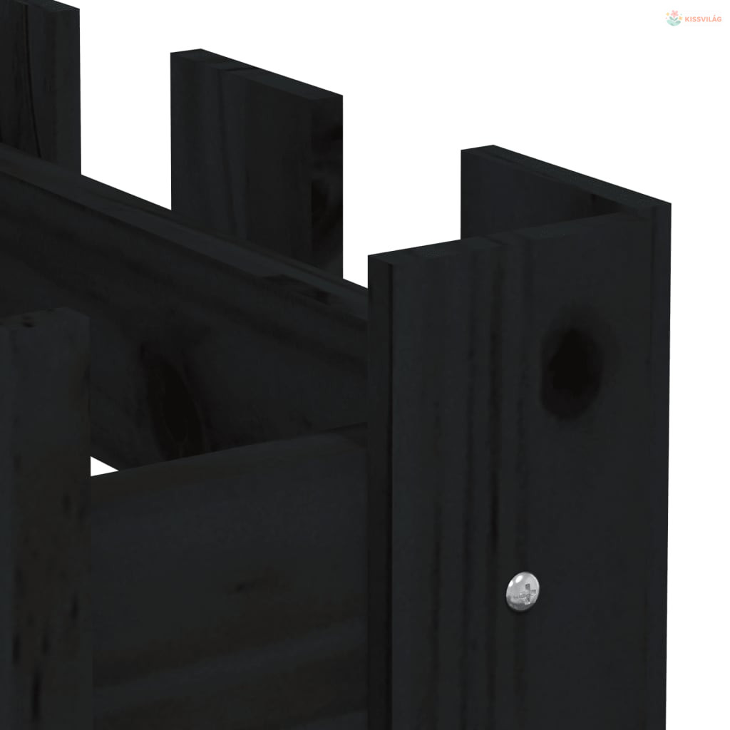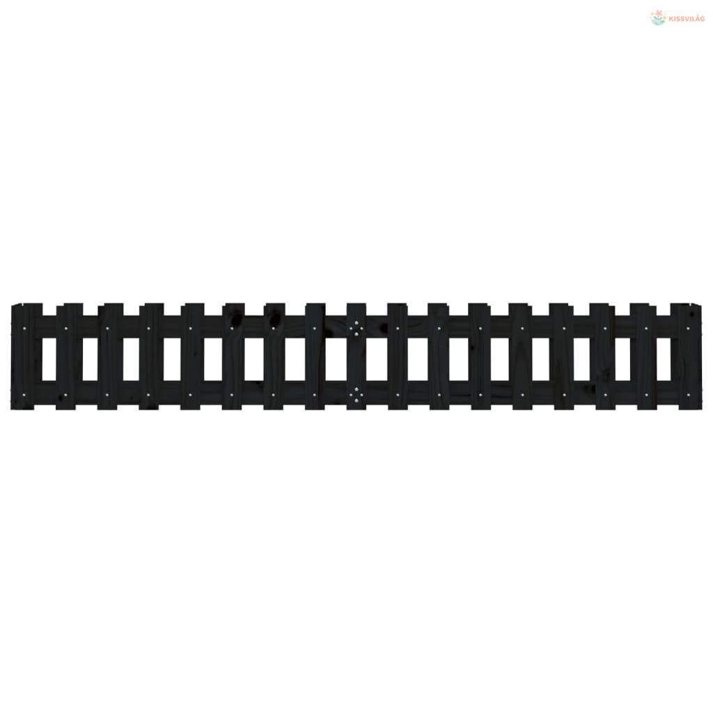 Fekete tömör fenyőfa kerti magaságyás kerítéssel 200x30x30 cm