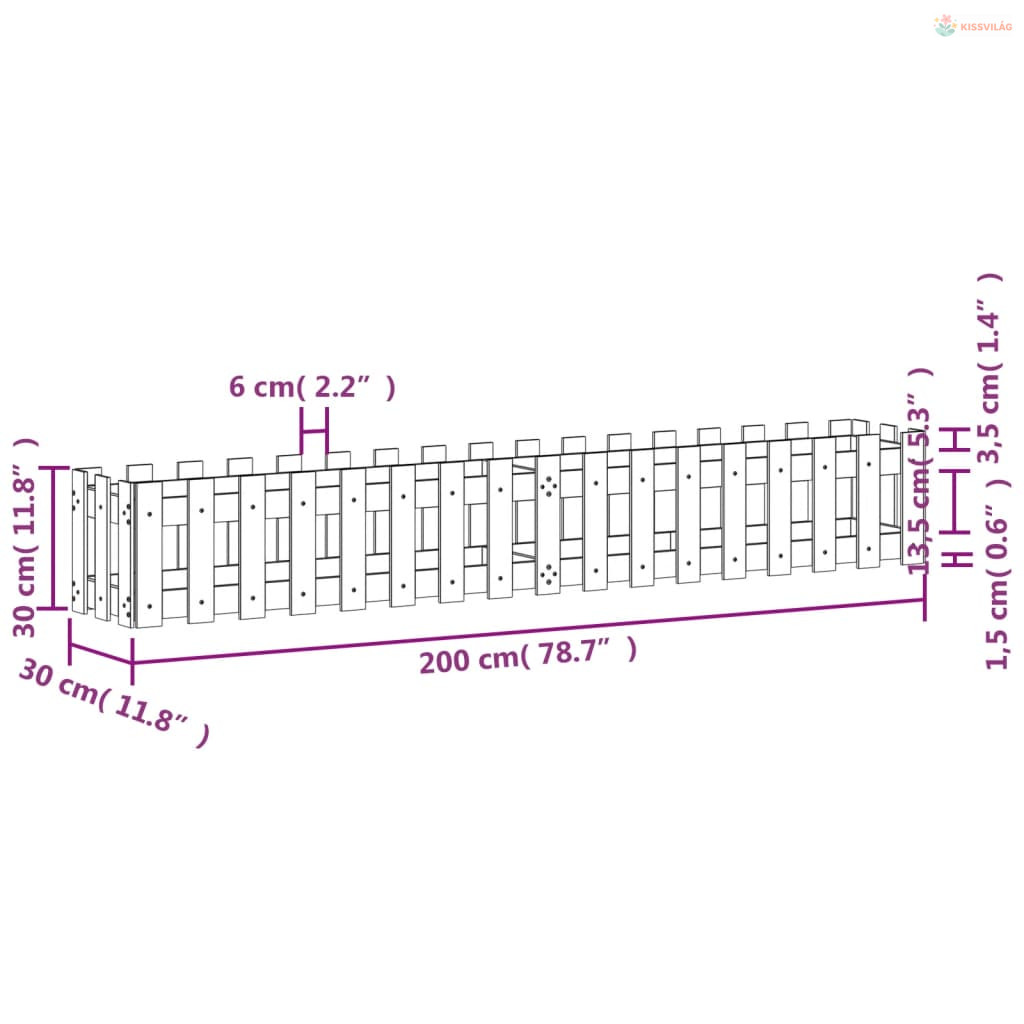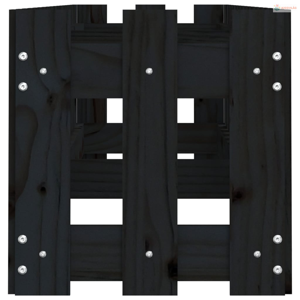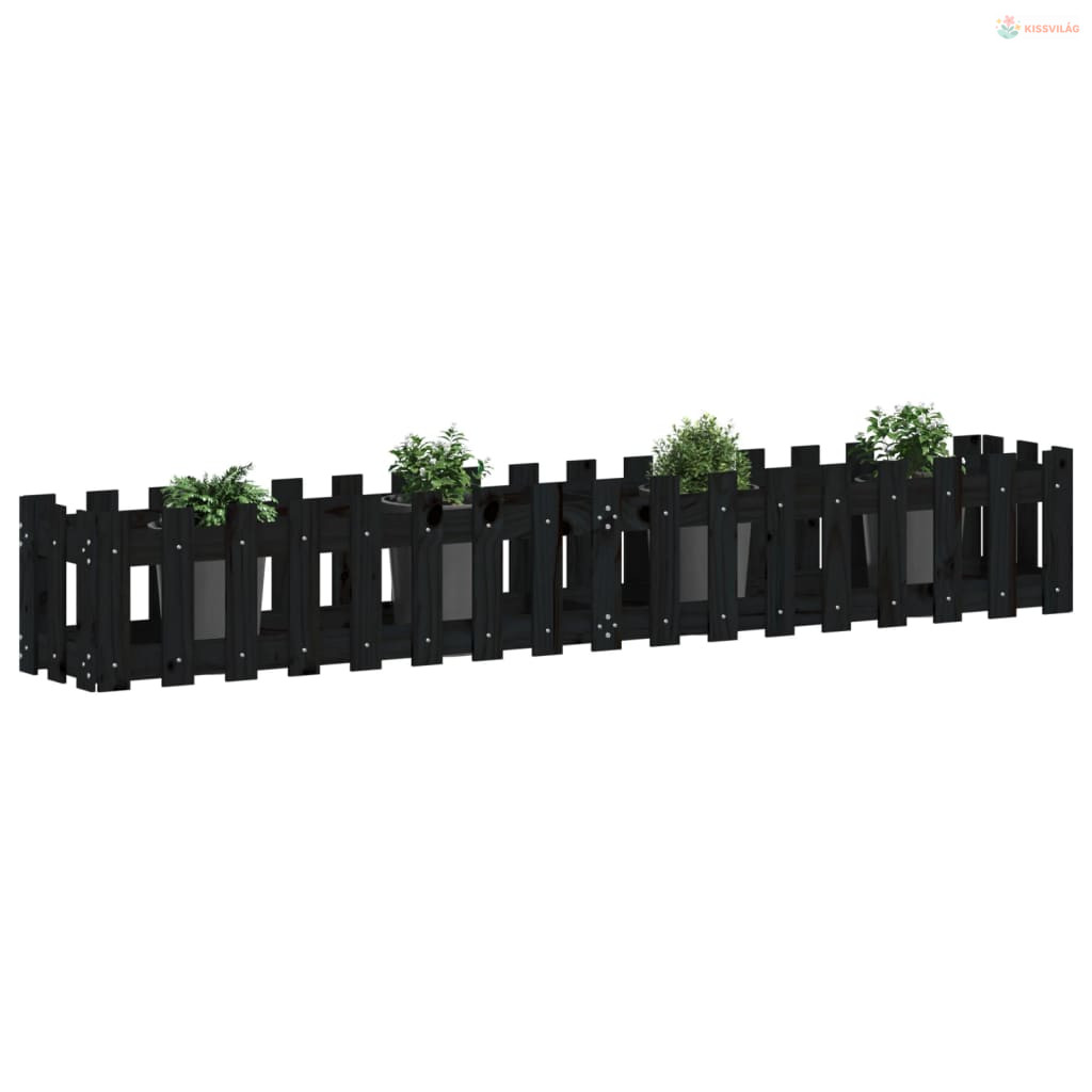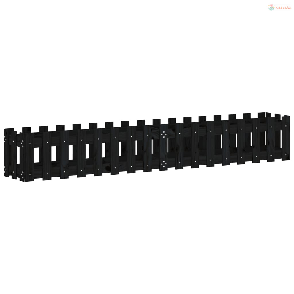 Fekete tömör fenyőfa kerti magaságyás kerítéssel 200x30x30 cm